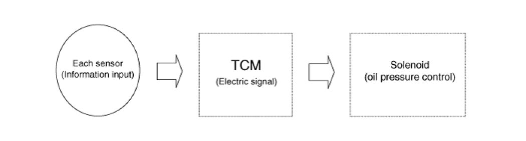TCM calculates the best condition using the information from all kinds of sensors. If the solenoid valve receives the information on the oil pressure, the solenoid valve actuates according to the driving signal. All kinds of regulators in the valve body are controlled to change the oil passage and also the line pressure is controlled by TCM.