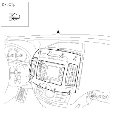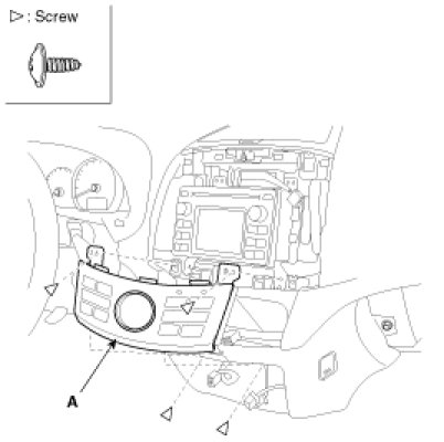 2. Remove the center facia panel(A). Take care not to damage fixing clips.