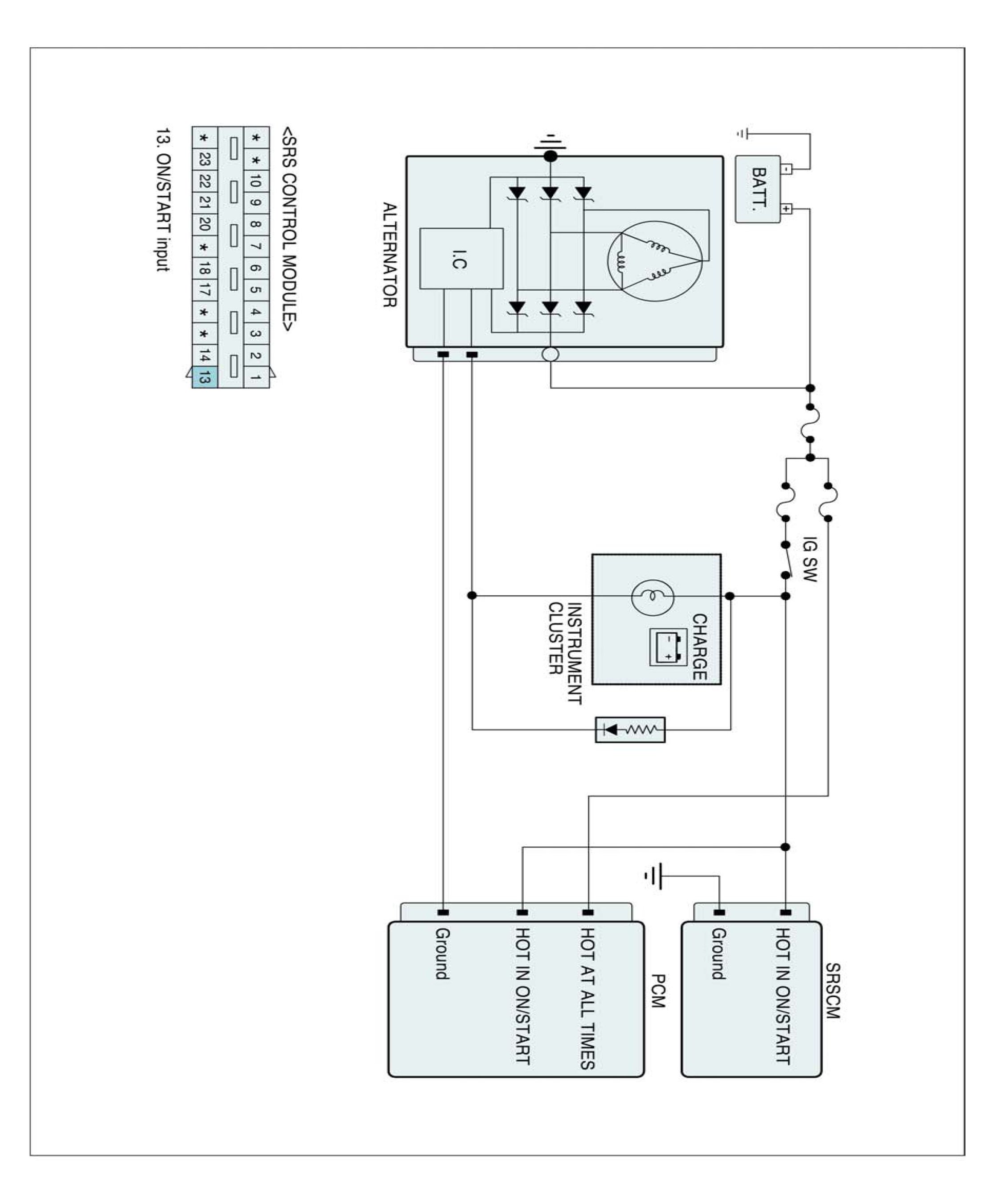 SRSCM (Supplemental Restraints System Control Module) checks input voltage when "IG ON" to make air bag system work properly.