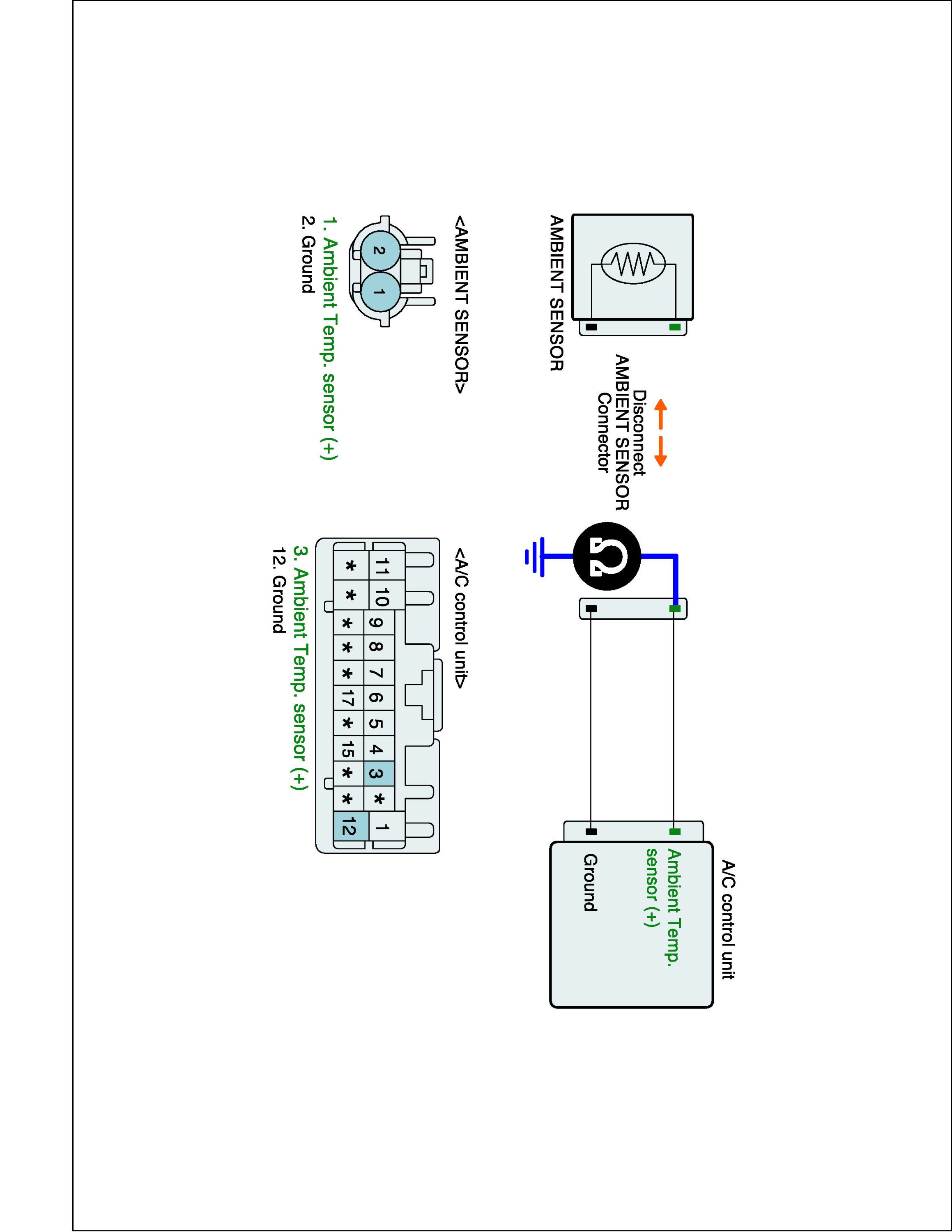 2. Disconnect Ambient sensor and Connect A/C control unit main harness connector.