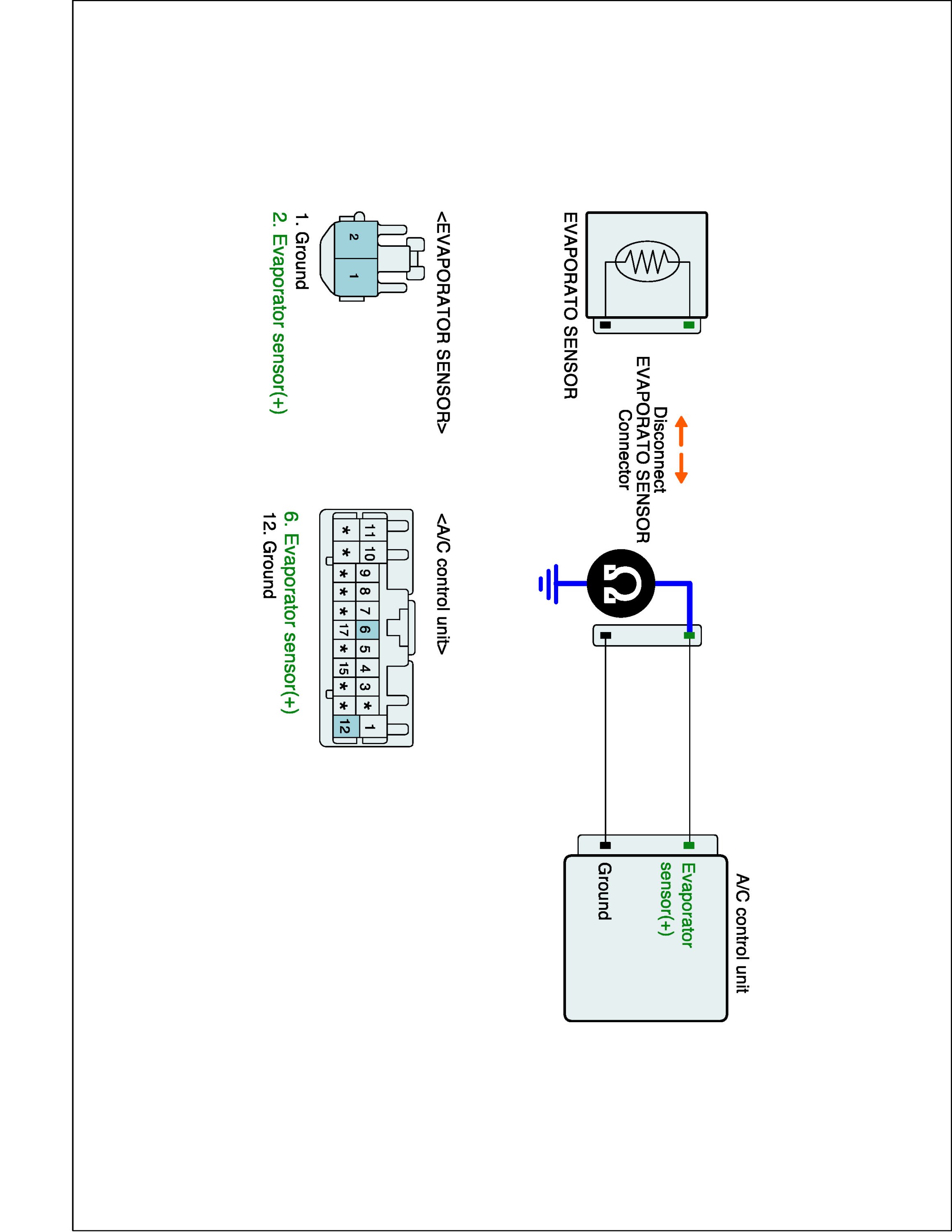 2. Disconnect Evaporator sensor and Connect A/C control unit main harness connector.