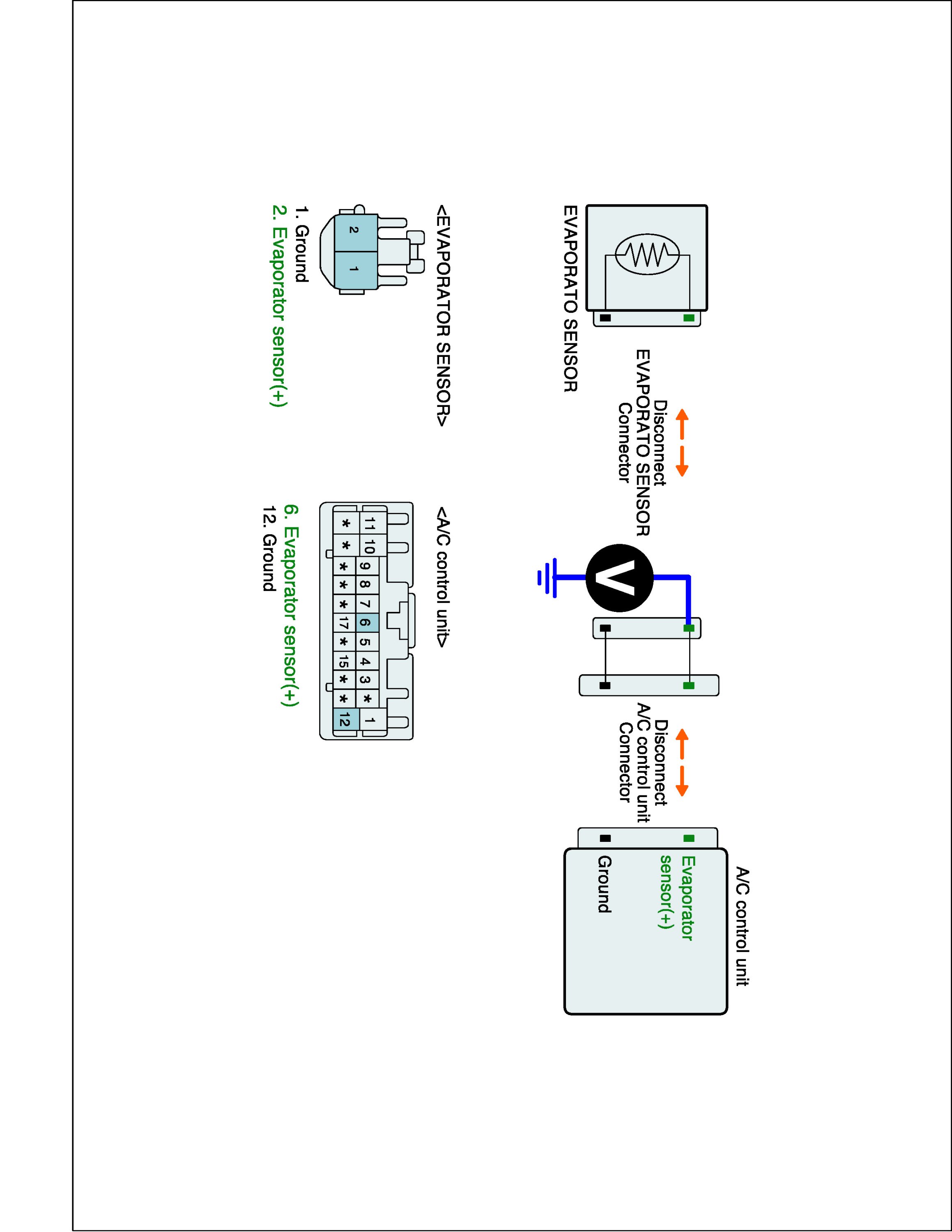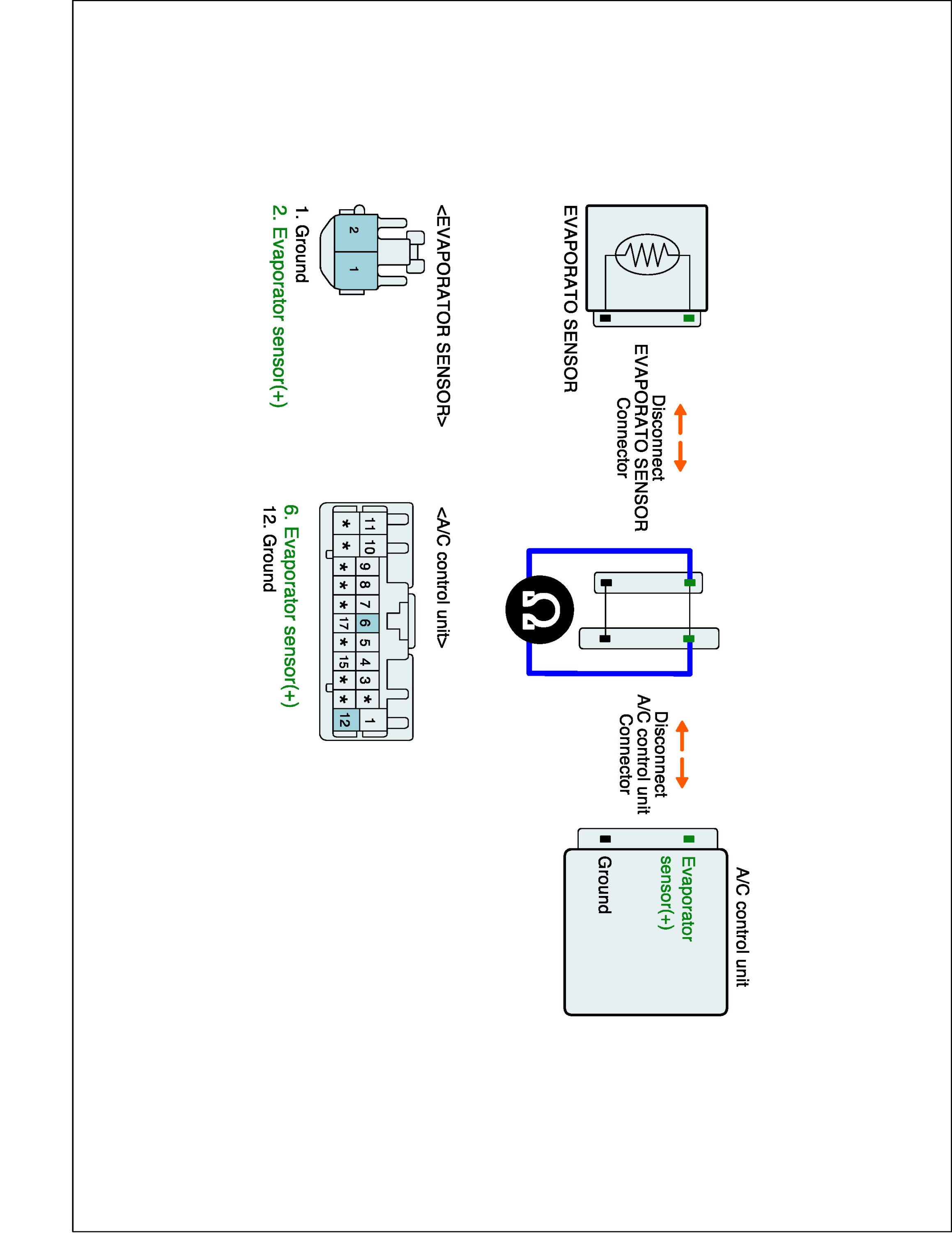 2. Disconnect Evaporator sensor and A/C control unit main harness connector.