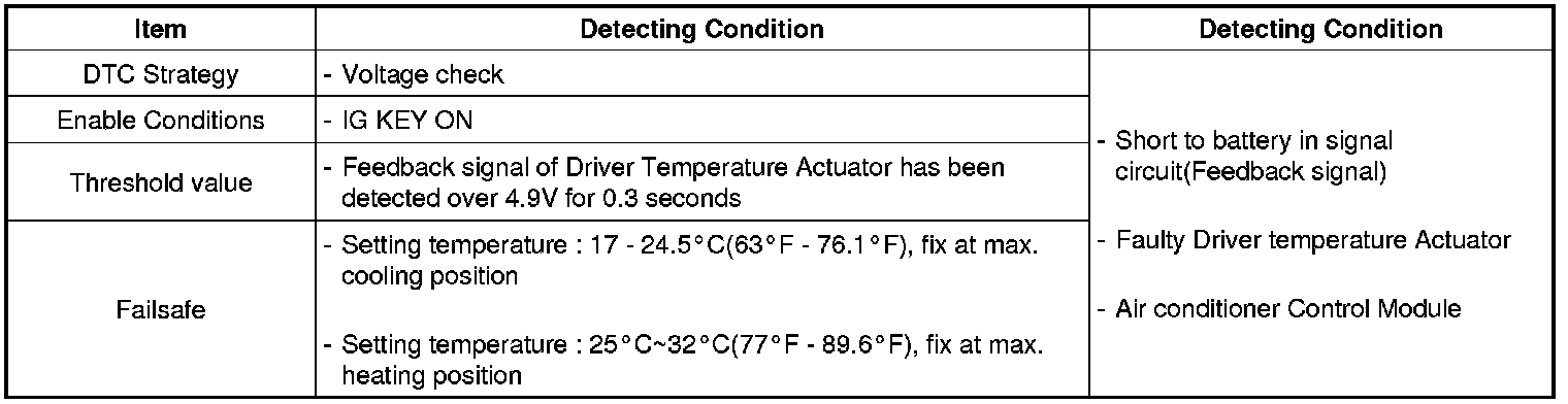 Air conditioner Control Module sets DTC B1246 if Feedback signal of Driver Temperature Actuator has been detected over 4.9 V for 0.3 seconds
