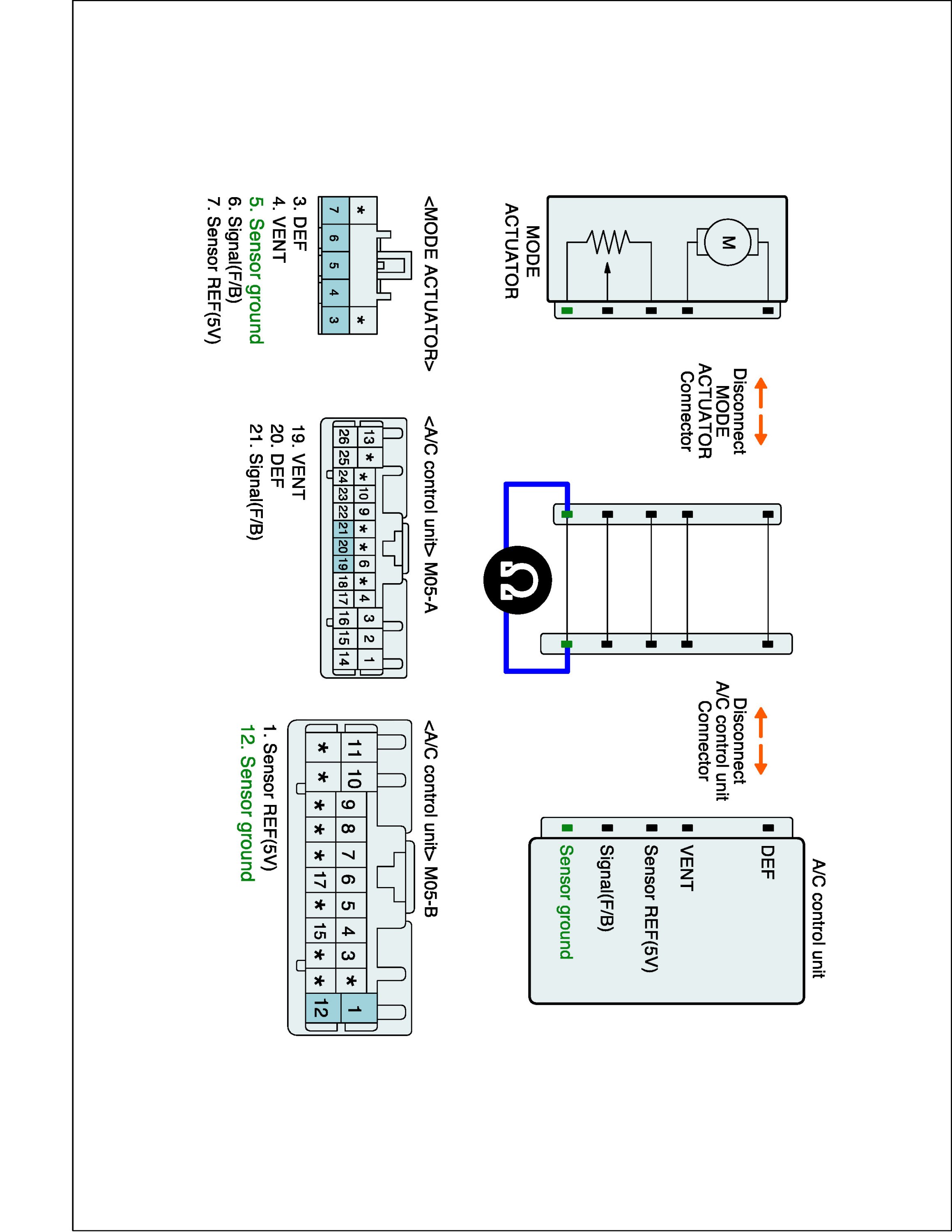 2. Disconnect Driver Direction actuator and A/C control unit main harness connector.
