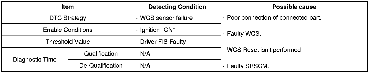 The SRSCM sets DTC B1322 if there is any fault in Weight Classification System Sensor circuit.