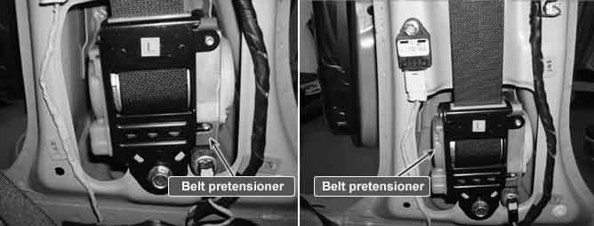 Seat Belt Pretensioner (hereinafter referred to BPT) is located at both side of center pillar.
