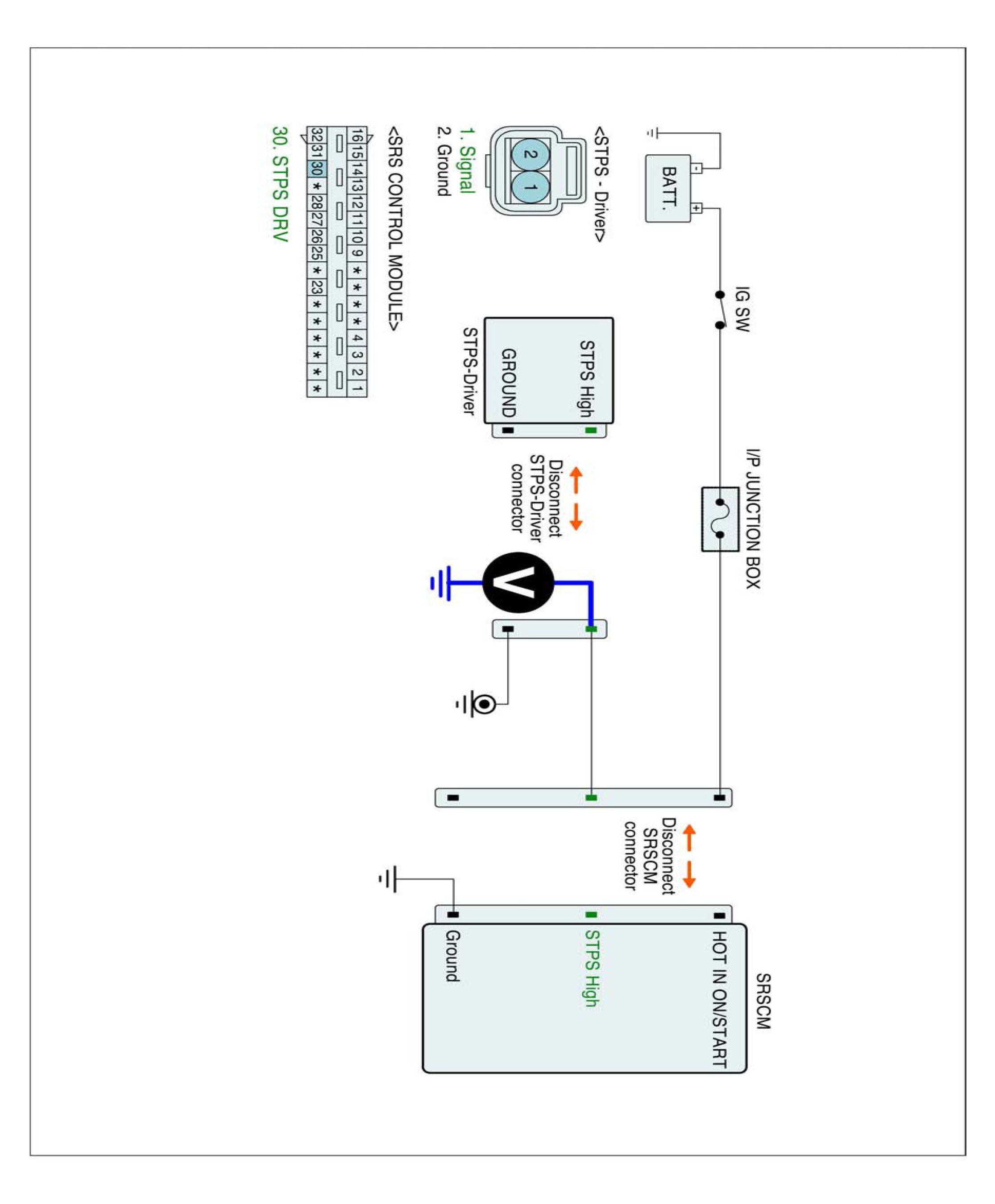 3. Disconnect STPS connector and SRSCM main harness connector.