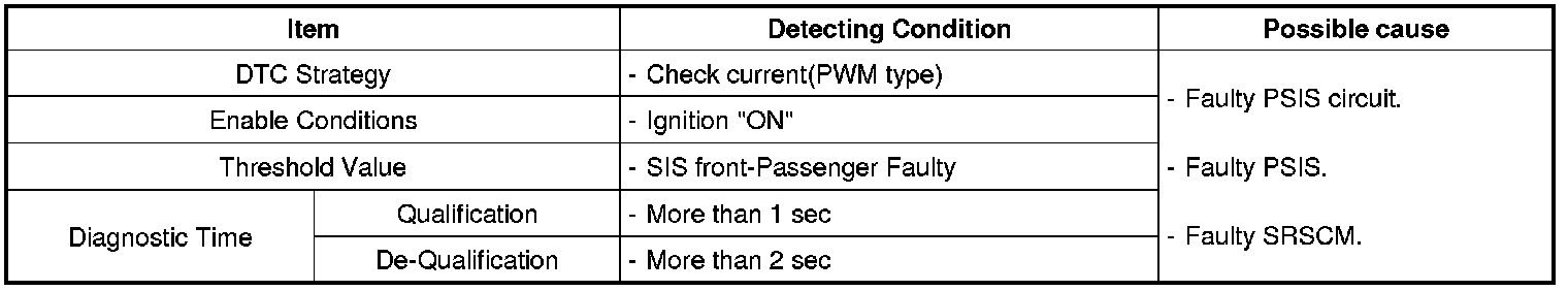 The SRSCM sets DTC B1403 if there is any fault in PSIS circuit.