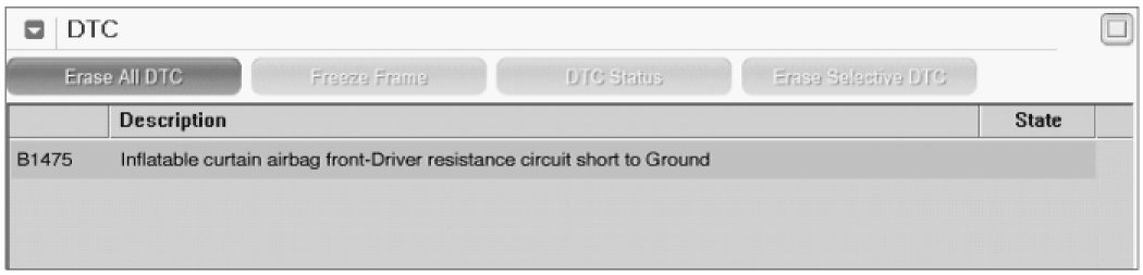 Airbag Control Unit - B1475 Inflatable Curtain Airbag Front-Driver Resistance Circuit Short to Ground - Scantool Diagnostics