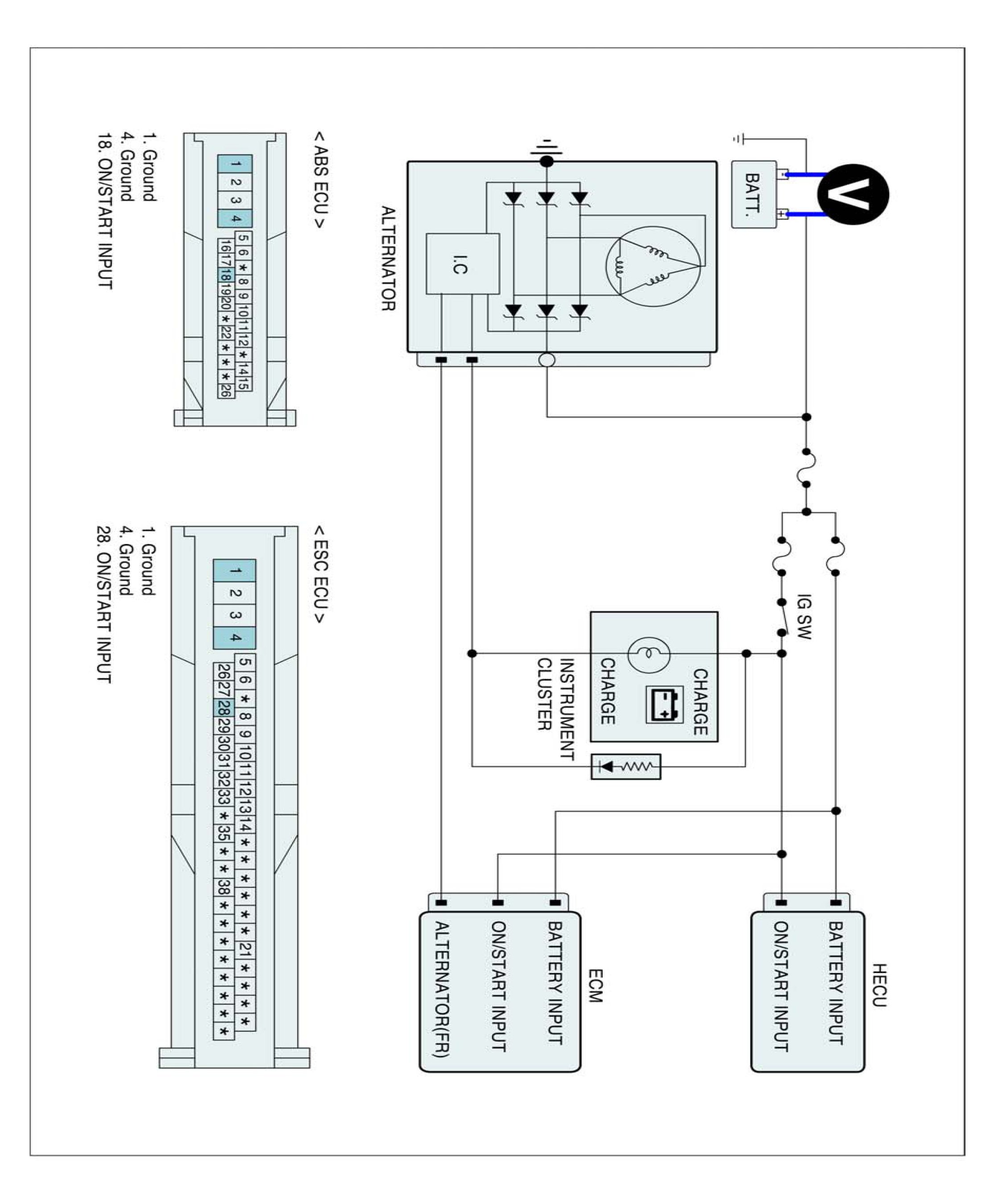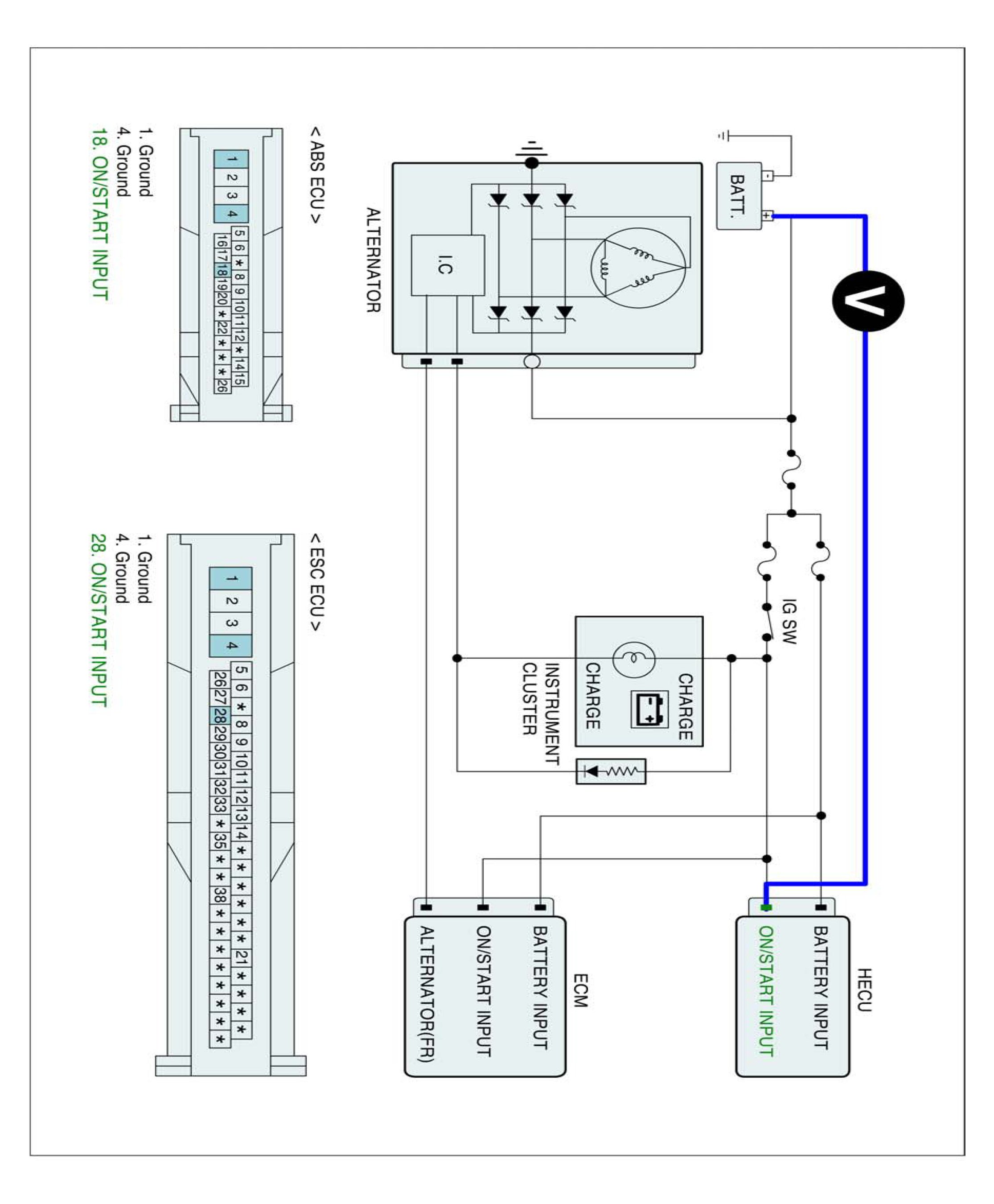 2. Measure voltage between the battery terminal (+) and power terminal of the HECU harness connector.