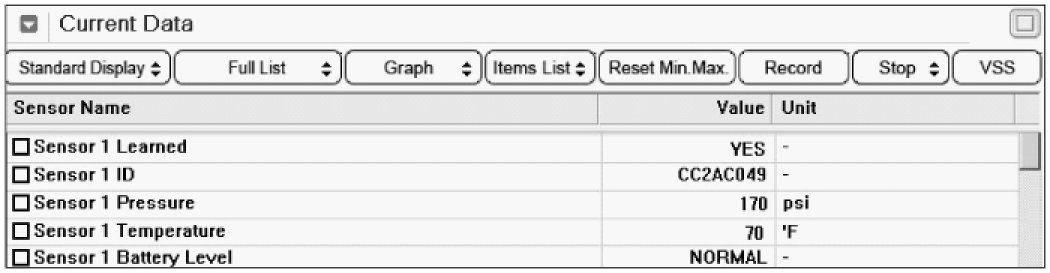 Tire Pressure Monitoring System - C1121 Sensor 1, Front Left Sensor Battery Voltage Low - Scantool Diagnostics