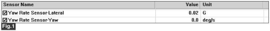 Electronic Stability Control - C1283 Yaw Rate & Lateral G Sensor-Signal - Monitor Scantool data