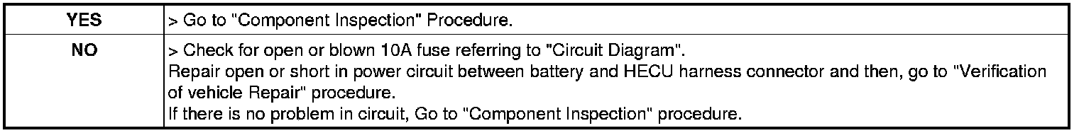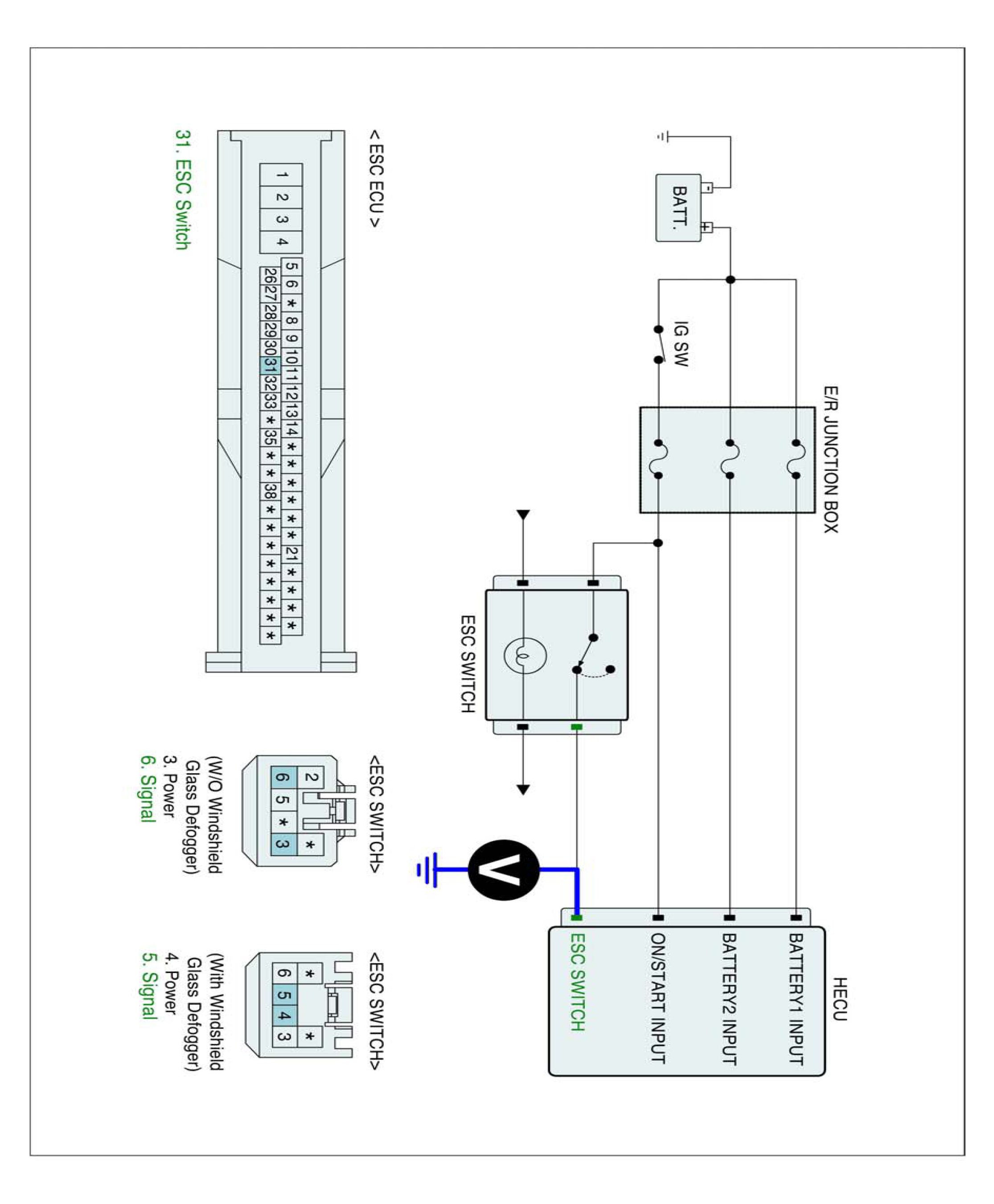 3. Measure voltage between ESC switch signal terminal of the HECU harness connector and chassis ground.