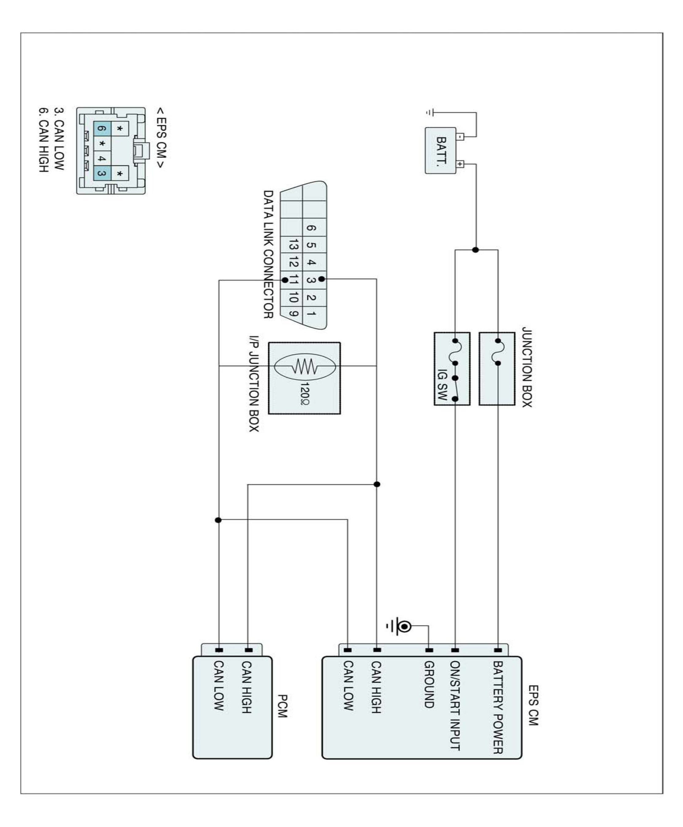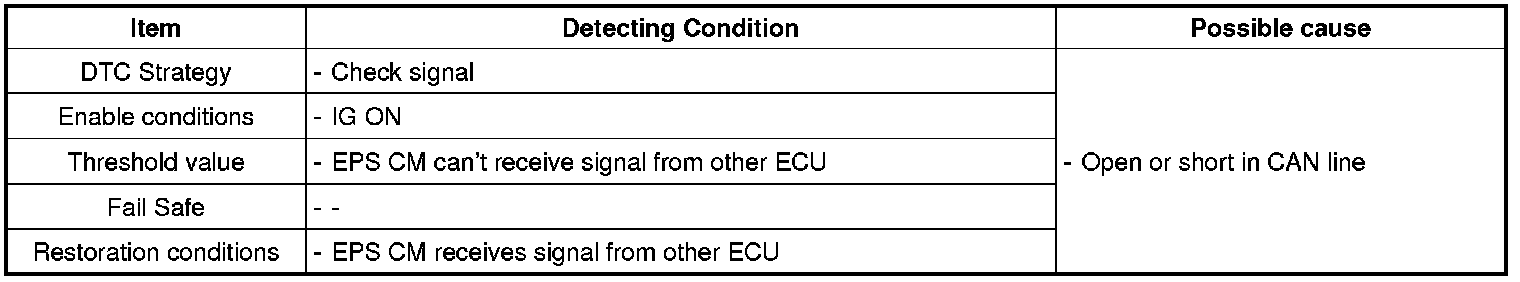 EPS CM controls warning lamp by sending a signal via CAN line. After sending a message, EPS CM checks signal about whether other ECU receives a signal correctly. If EPS CM receives signal from other ECU it recognizes that a message was transmitted normally.