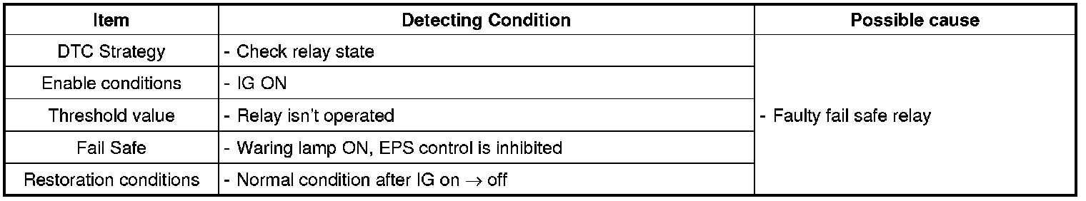 EPS CM sets this code and turns on warning lamp if a relay can't be on state when it receives a commend to turn it on.