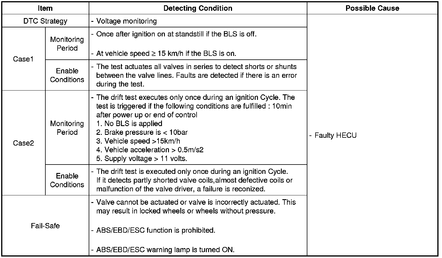 For example, the HECU sets the DTC if the electrical feedback signal does not match the actuation signal for the corresponding valve.