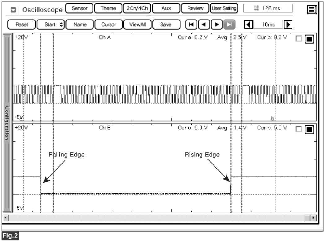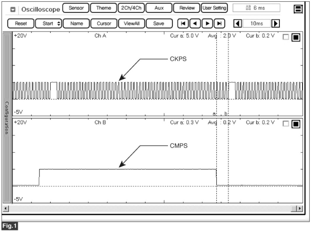 Fig.2) The CMPS falling (rising) edge is coincided with 3rd ~ 5th tooth of the CKP from one longer signal (missing tooth)