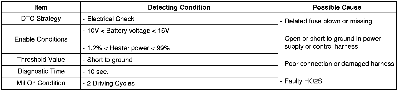 PCM sets DTC P0031 if the PCM detects that the front HO2S heater control circuit is short to ground.