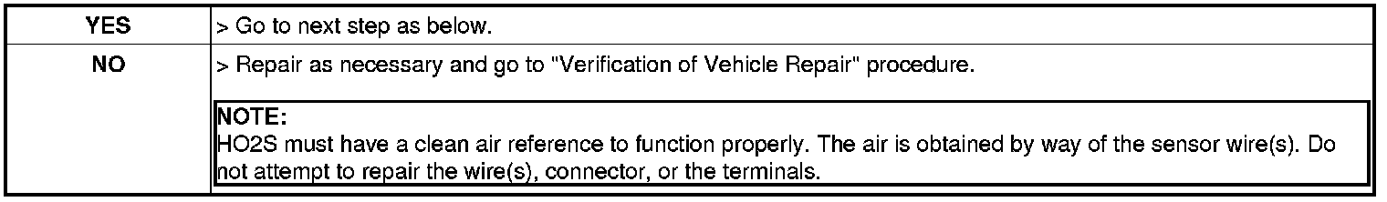 1. Measure voltage between control terminal of the HO2S heater harness connector and chassis ground.