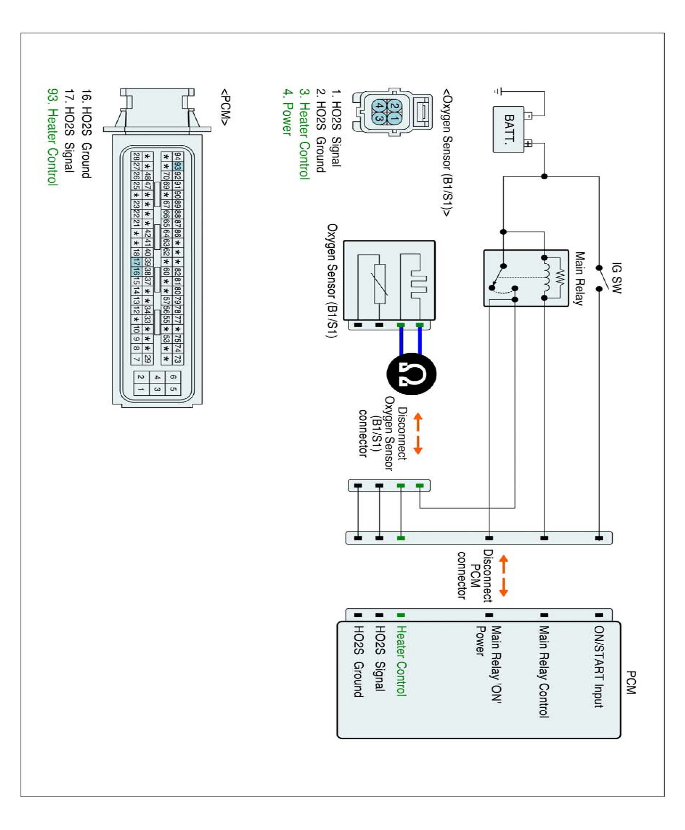 Engine Control - P0032 HO2S Heater Control Circuit High (Bank 1 / Sensor 1) - Component Inspection