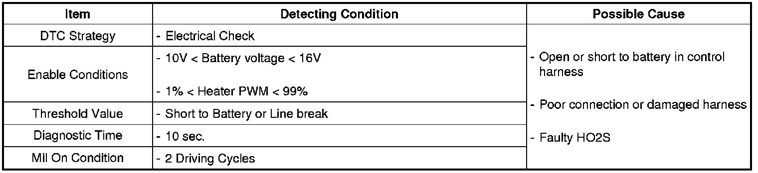 PCM sets DTC P0038 if the PCM detects that the rear HO2S heater control line is open or short to battery line.