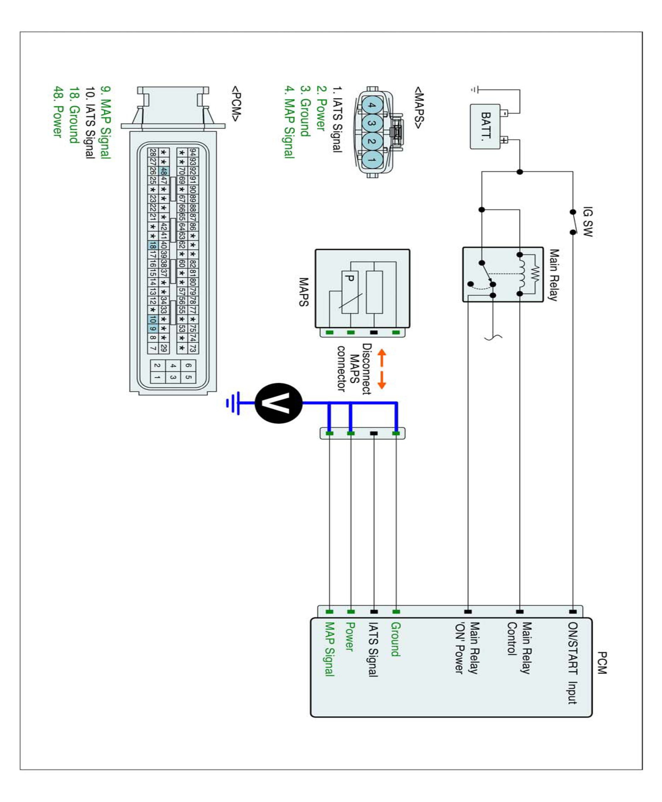 4. Measure voltage between each of signal / power / ground terminals of MAPS harness connector and chassis ground.