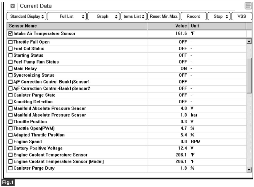 Fig.1) Intake Air Temp. sensor : Approx. 161.6°F at IG ON