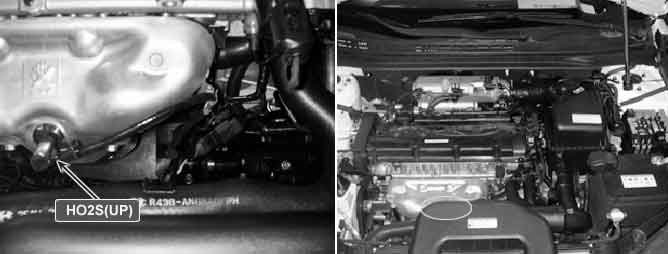 The linear O2 sensor is mounted on the front side of the Catalytic Converter (warm-up catalytic converter) or in the front exhaust pipe. It detects a wide range of air/fuel ratios in the exhaust gas from the rich to lean regions. This linear O2 sensor produces a current that corresponds to a specific air/fuel ratio. The PCM monitors this signal and determines whether the air/fuel mixture is rich or lean. The PCM constantly monitors the linear O2 sensor and increases or decreases the fuel injection duration using this signal. This is called closed-loop fuel control operation.