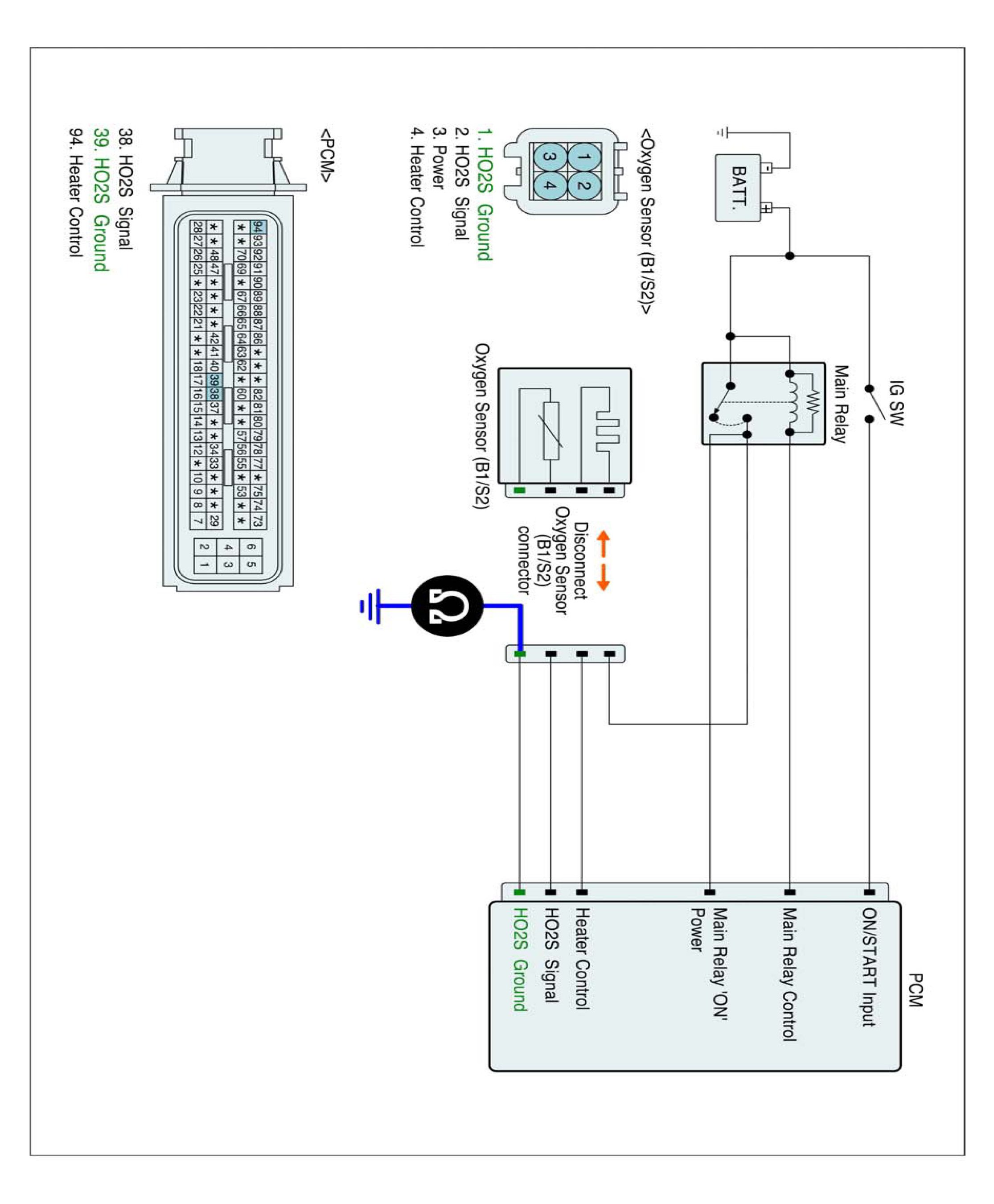 2. Measure voltage between signal terminal of HO2S (B1S2) harness connector and chassis ground.