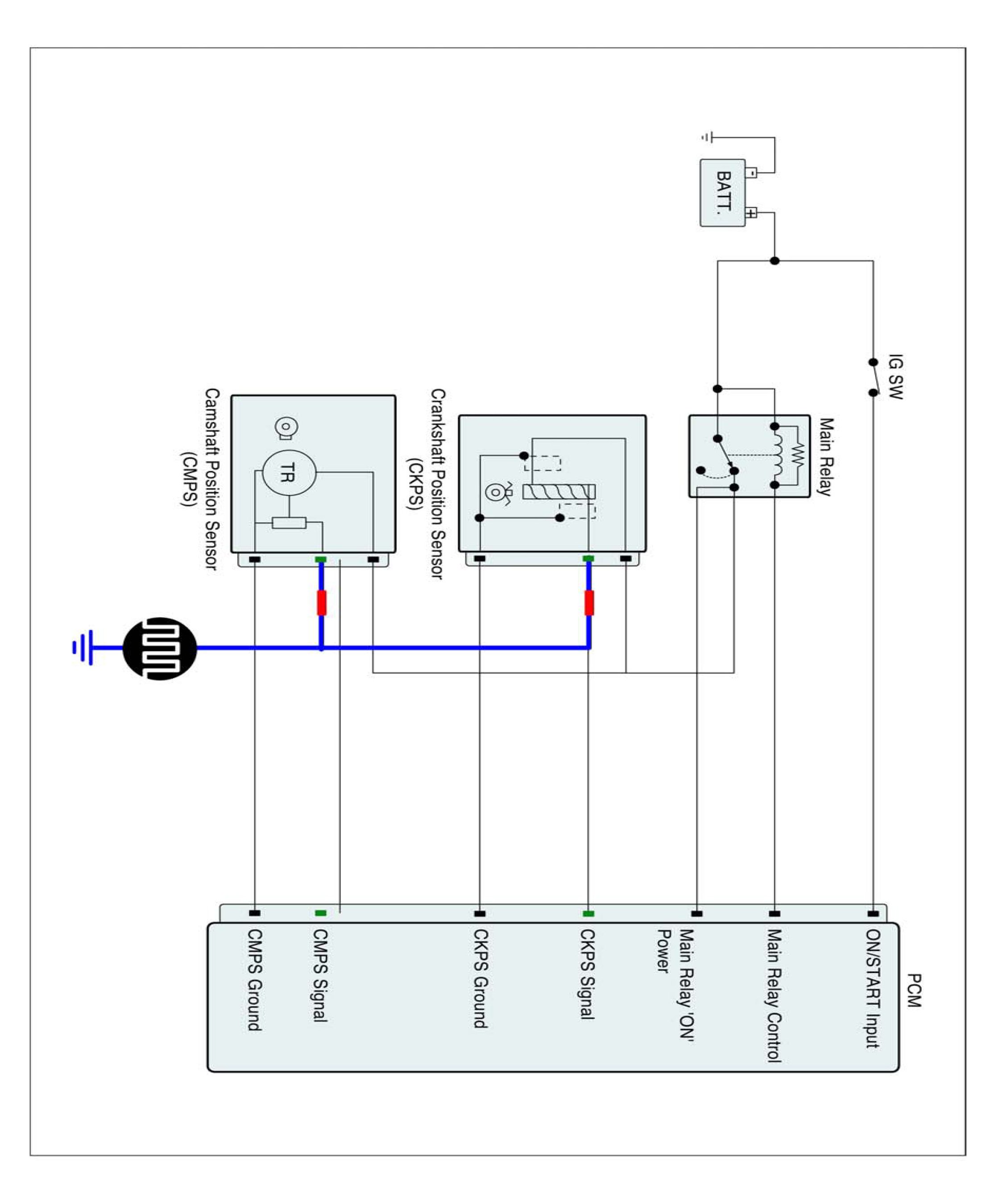 Fig.2) The CMPS falling (rising) edge is coincided with 3rd ~ 5th tooth of the CKP from one longer signal (missing tooth)