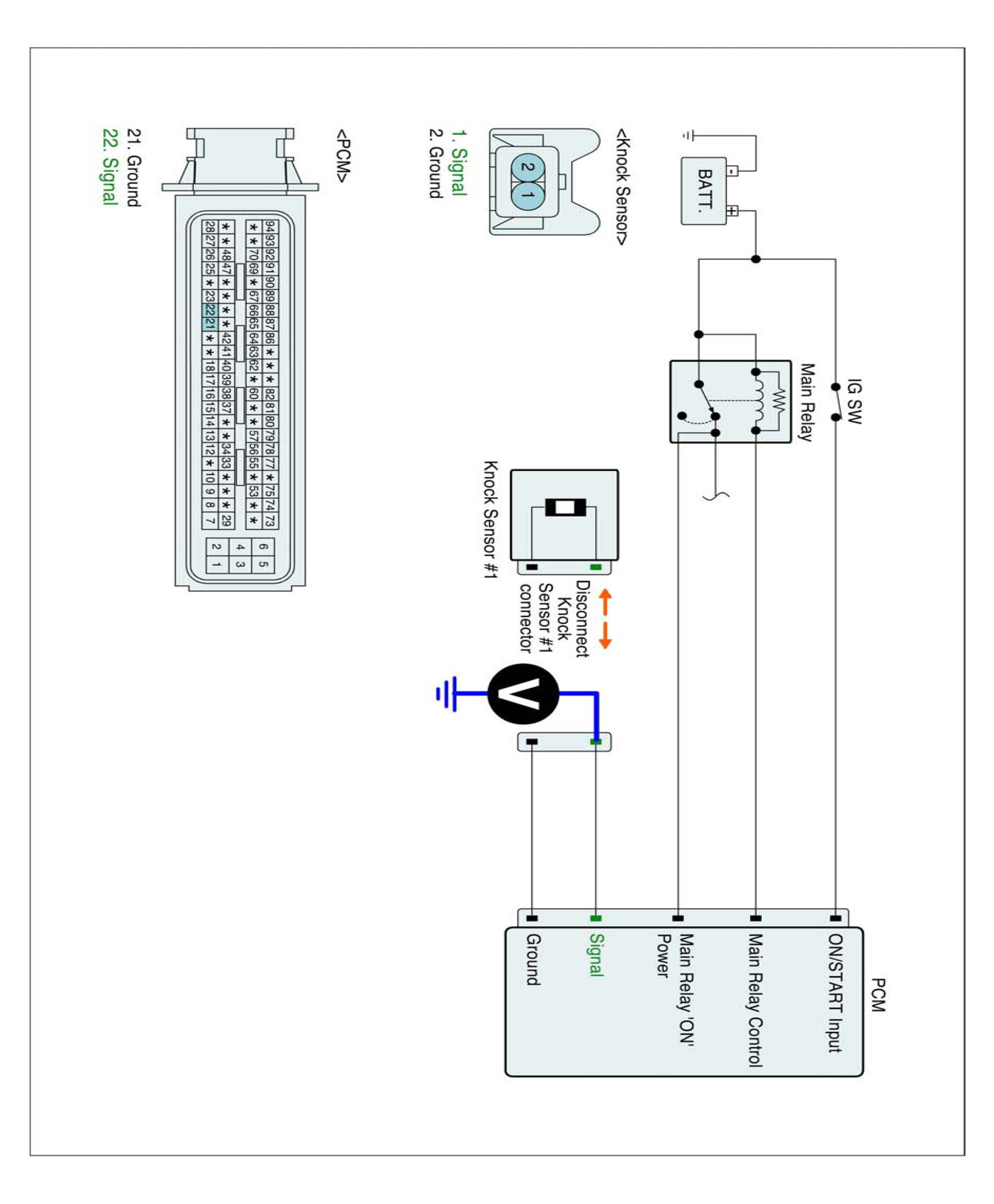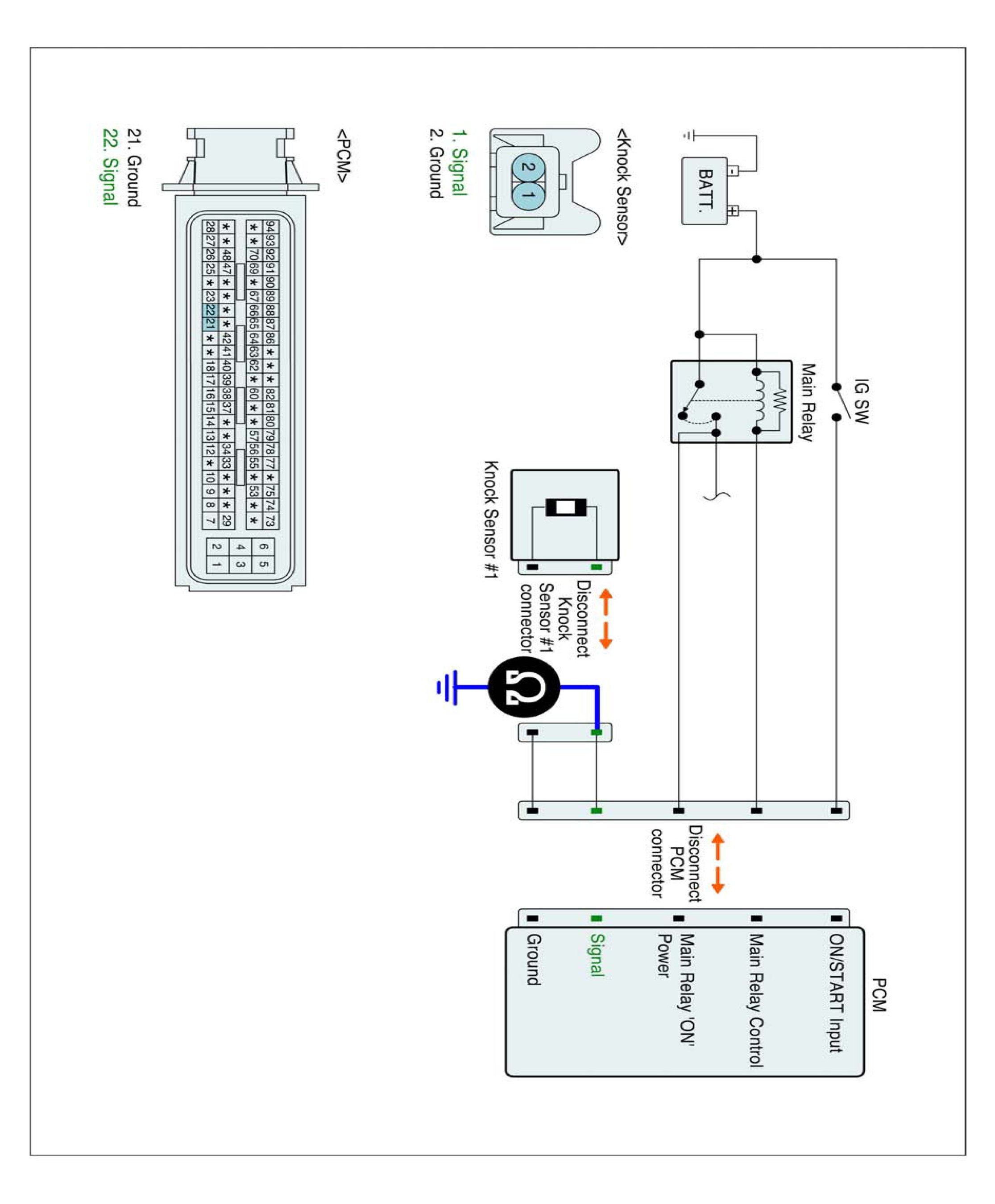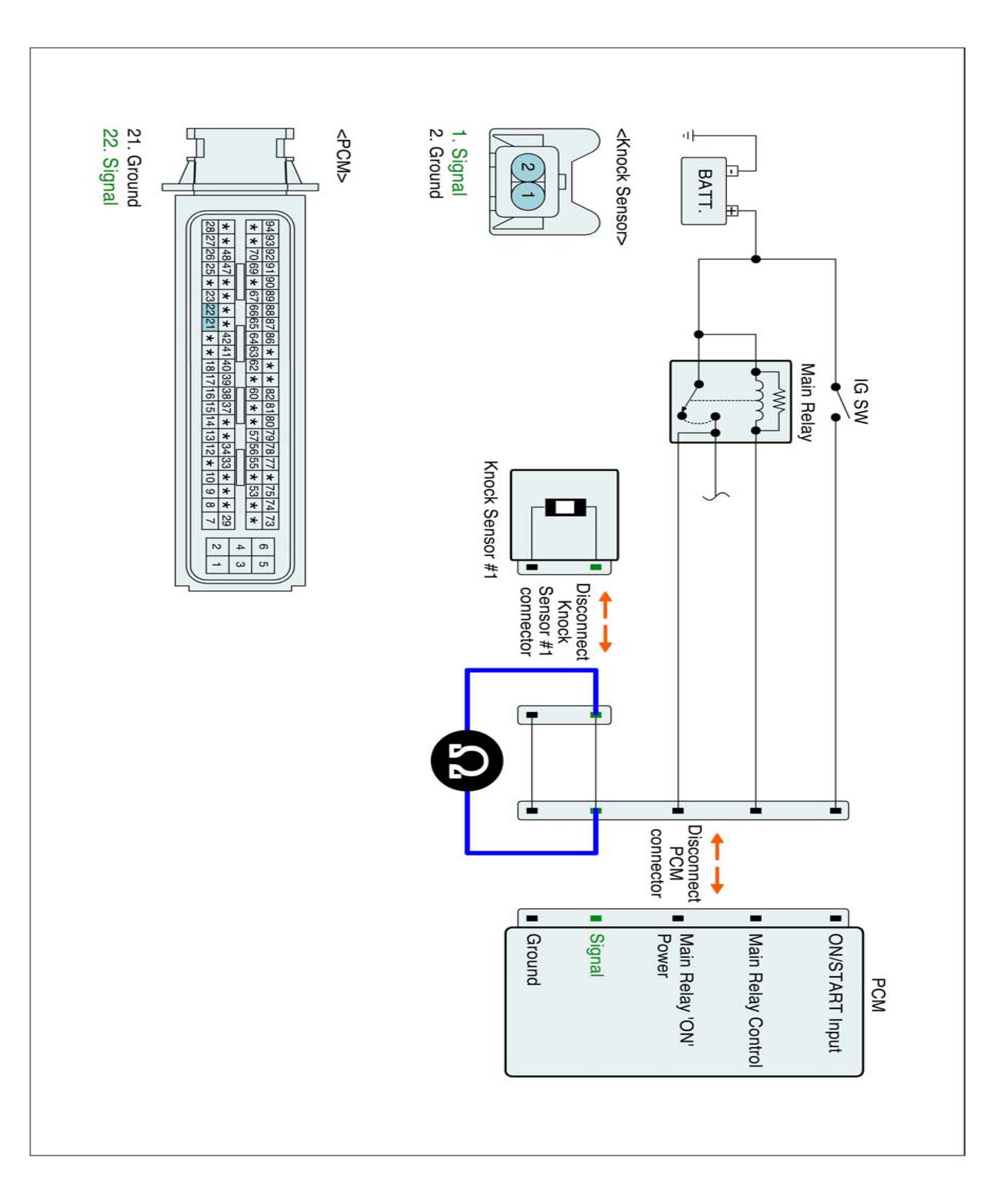 (2) Measure resistance between signal terminal of sensor harness connector and Knock signal terminal of the PCM harness connector.