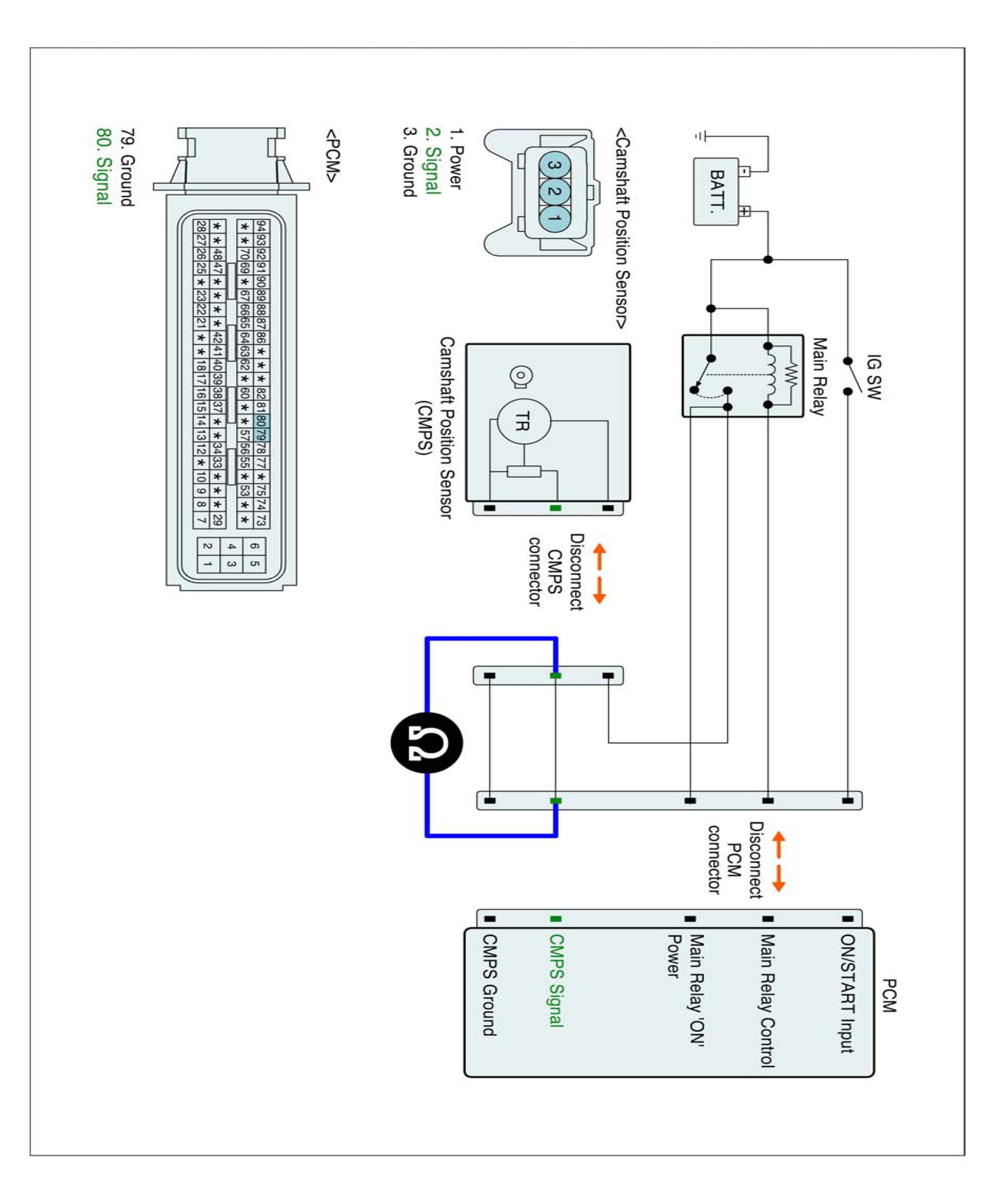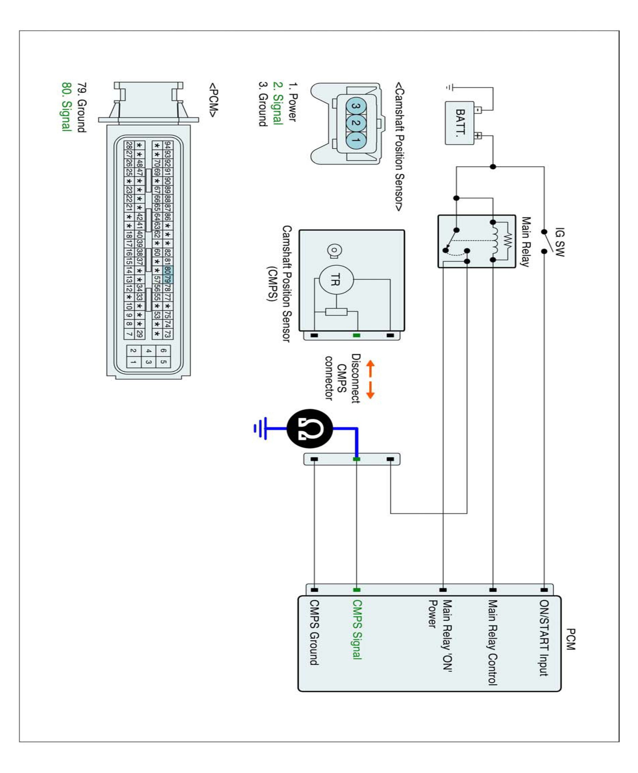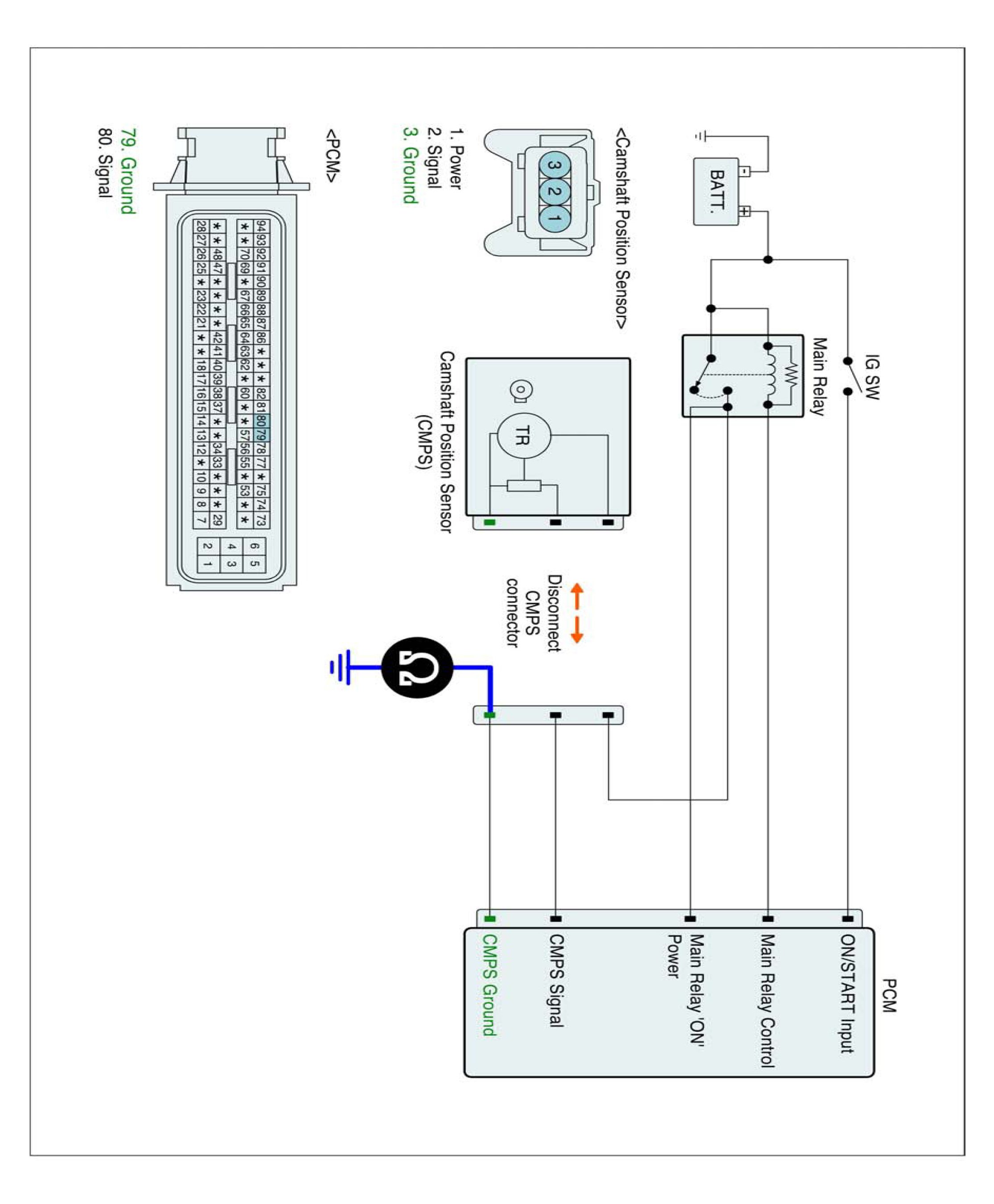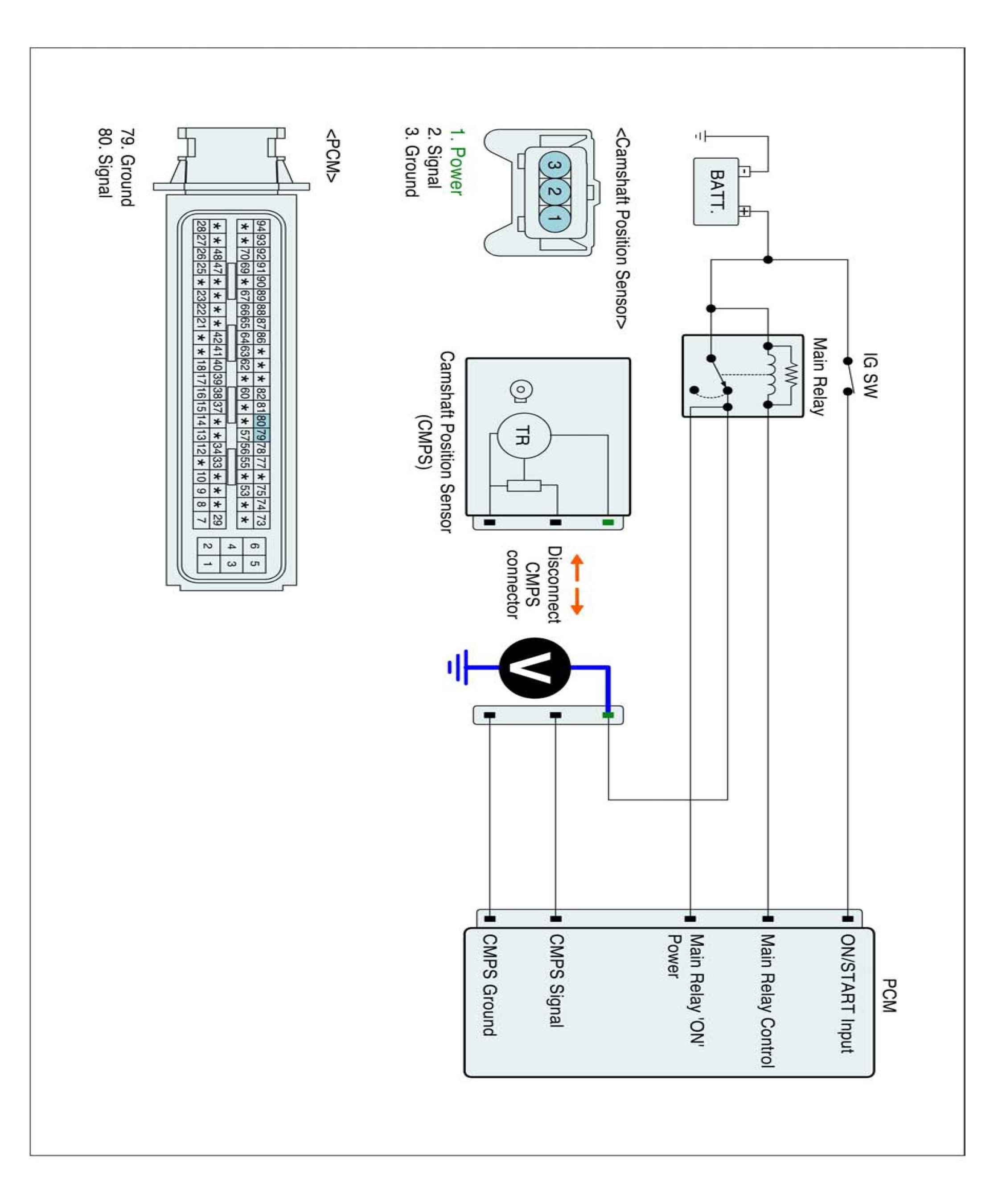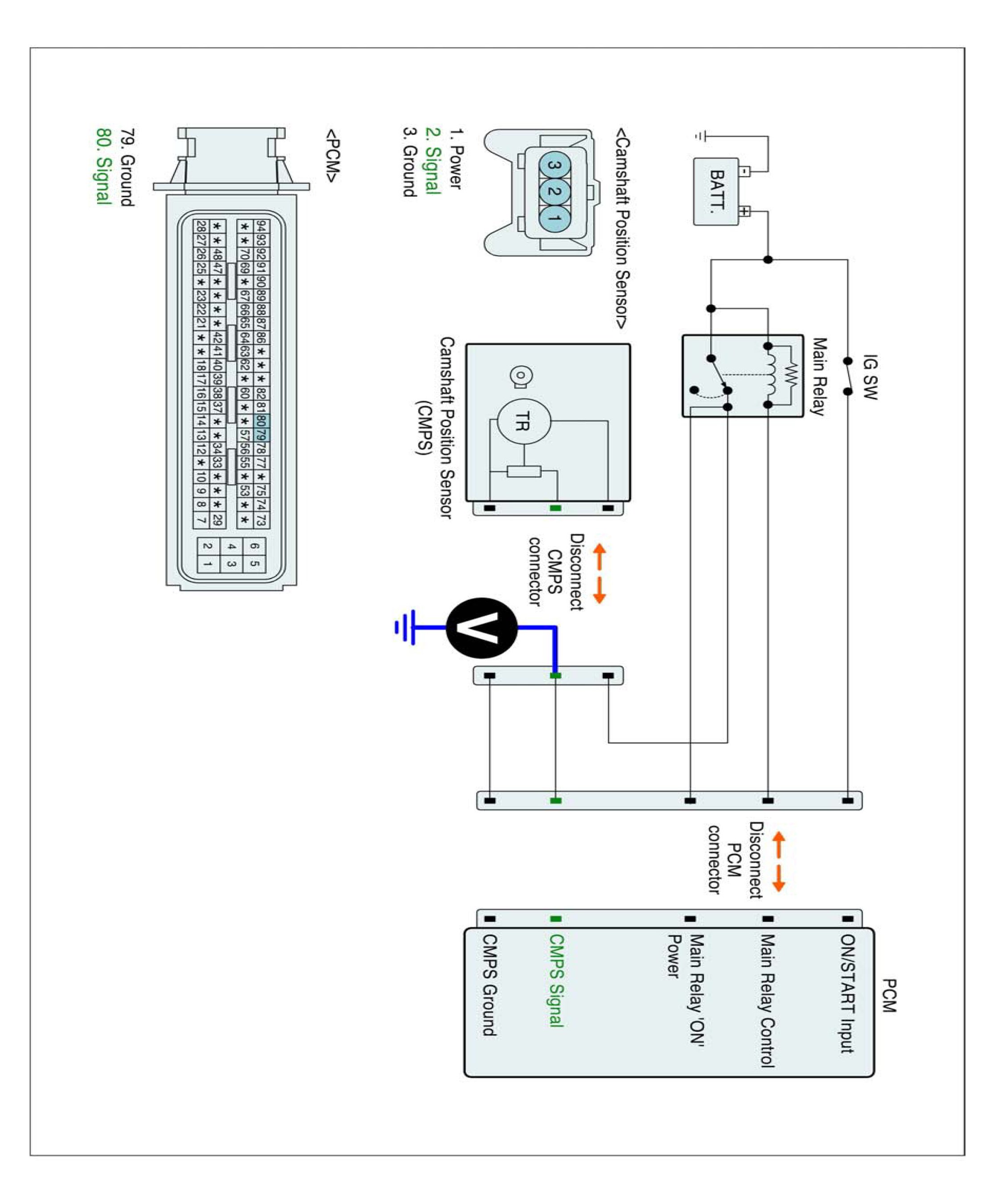 (2) Measure resistance between signal terminal of CMPS harness connector and CMPS signal terminal of the PCM connector.