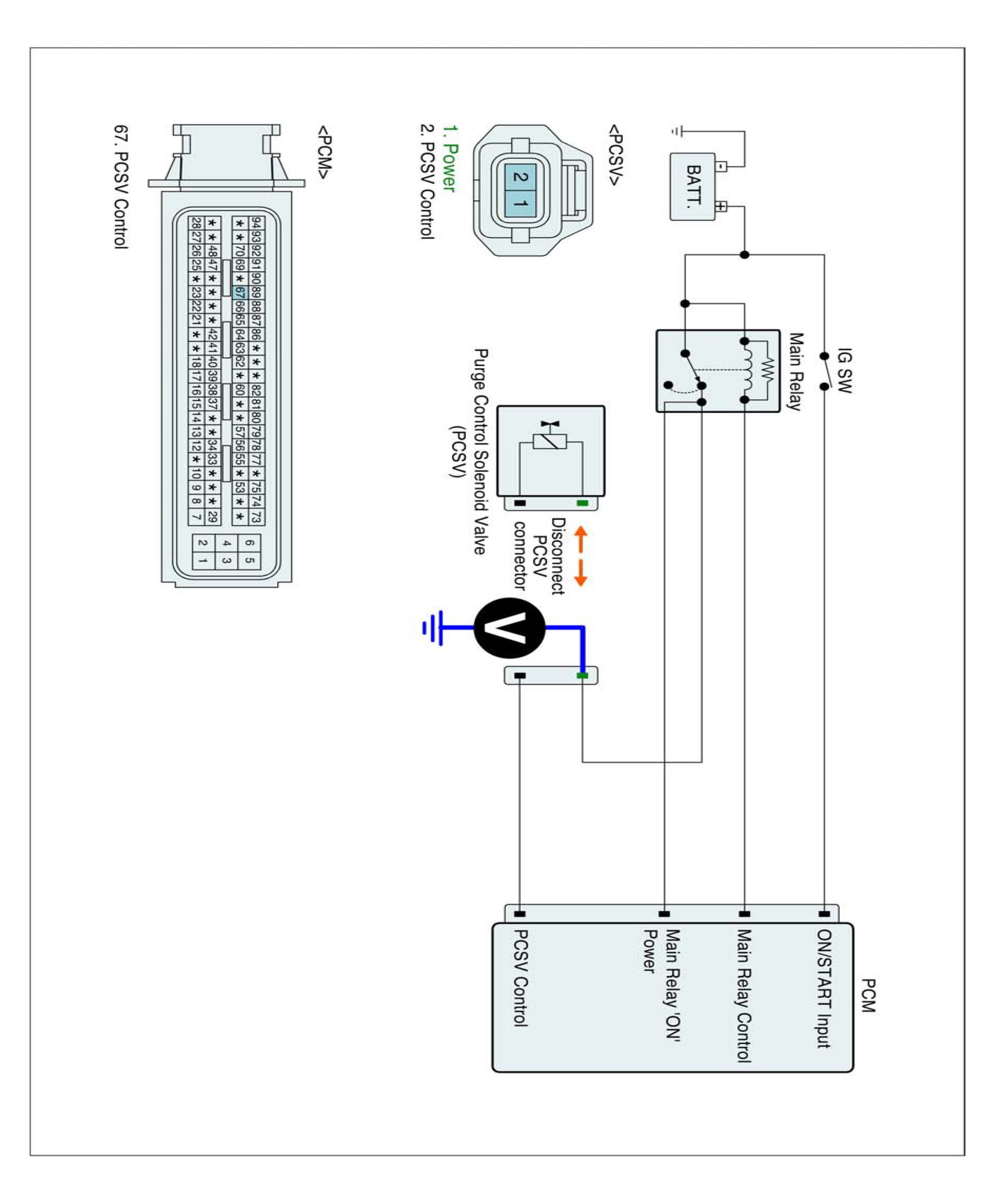 2. Measure voltage between power terminal of PCSV harness connector and chassis ground.