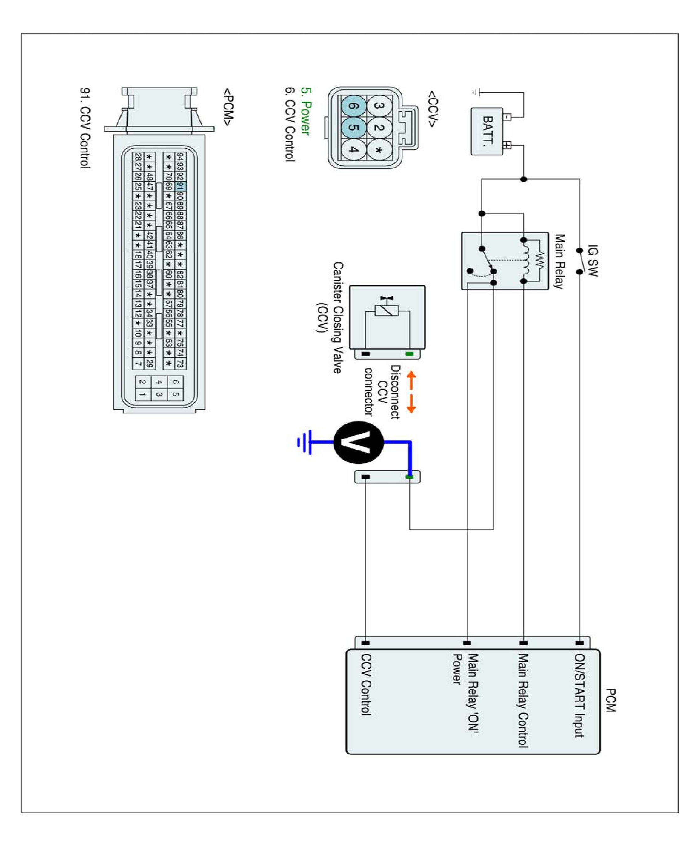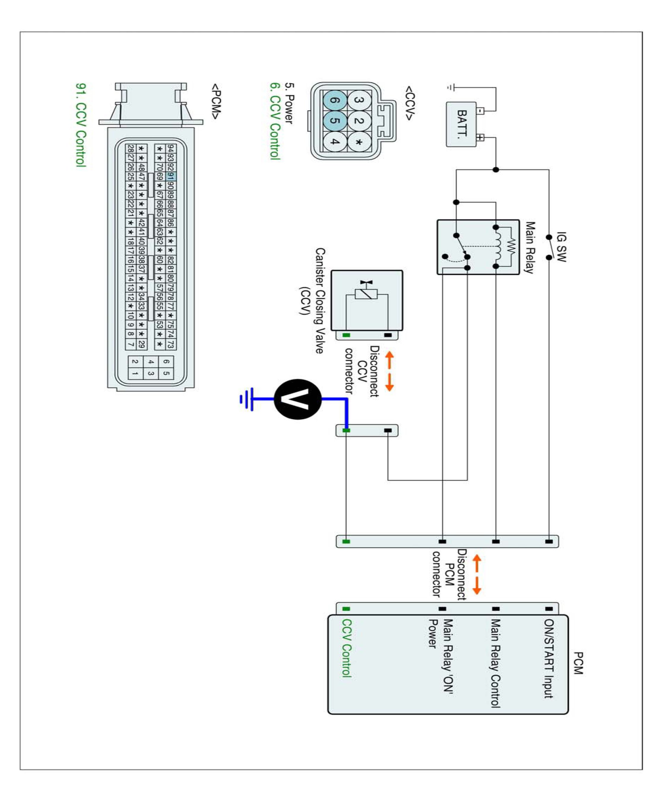 4. Measure voltage between control terminal of the CCV harness connector and chassis ground.