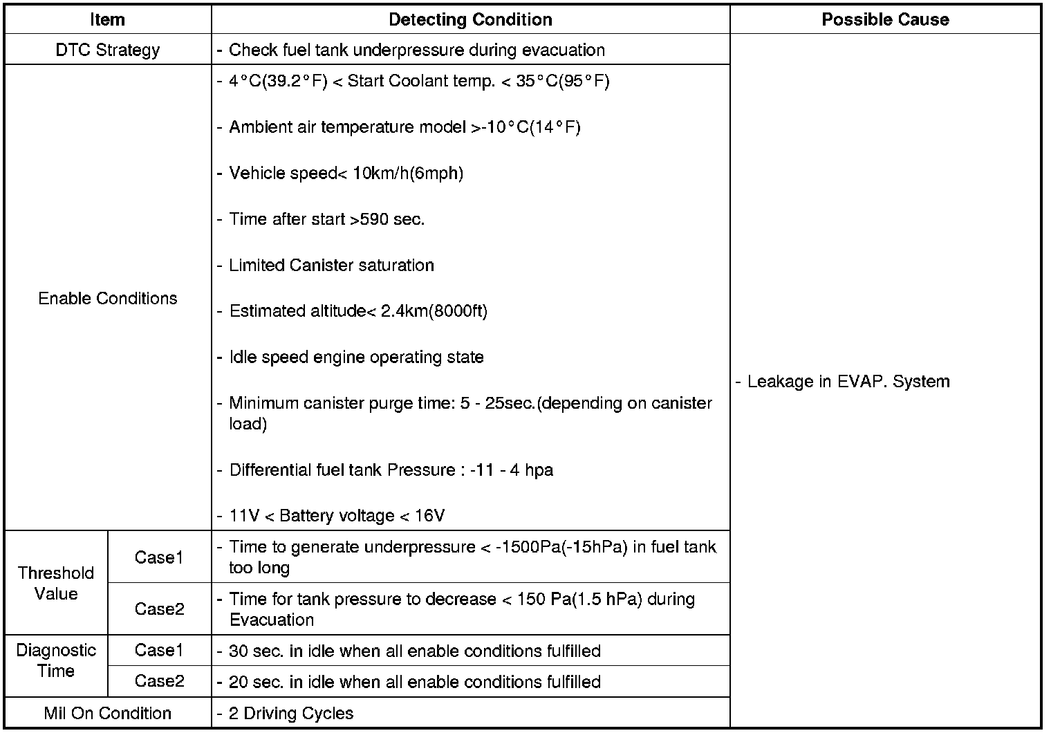 DTC Detecting Condition