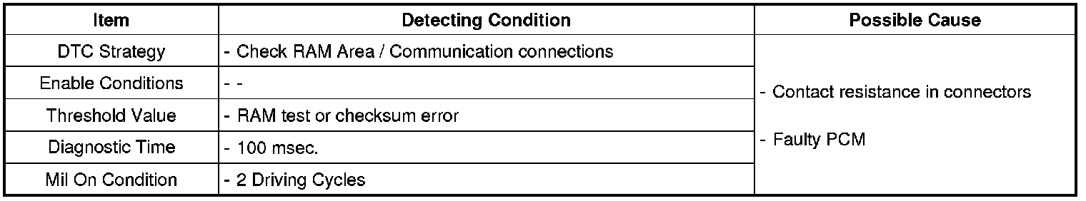 The PCM monitors RAM areas and communication connections between micro-controller and output drivers and sets DTC P0605 if failure is detected.