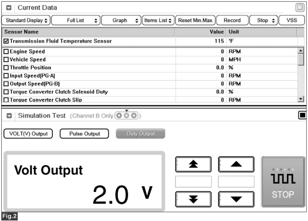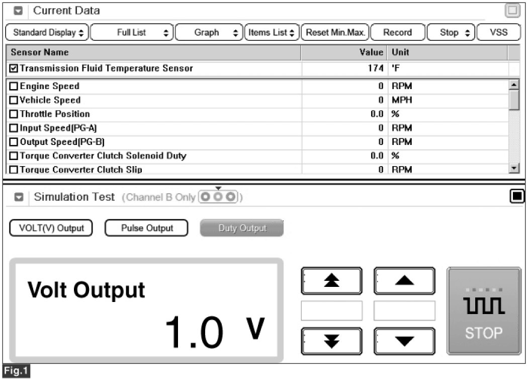 4. Simulate voltage (0->5 V) to "TRANSMISSION FLUID TEMPERATURE SENSOR" signal circuit.