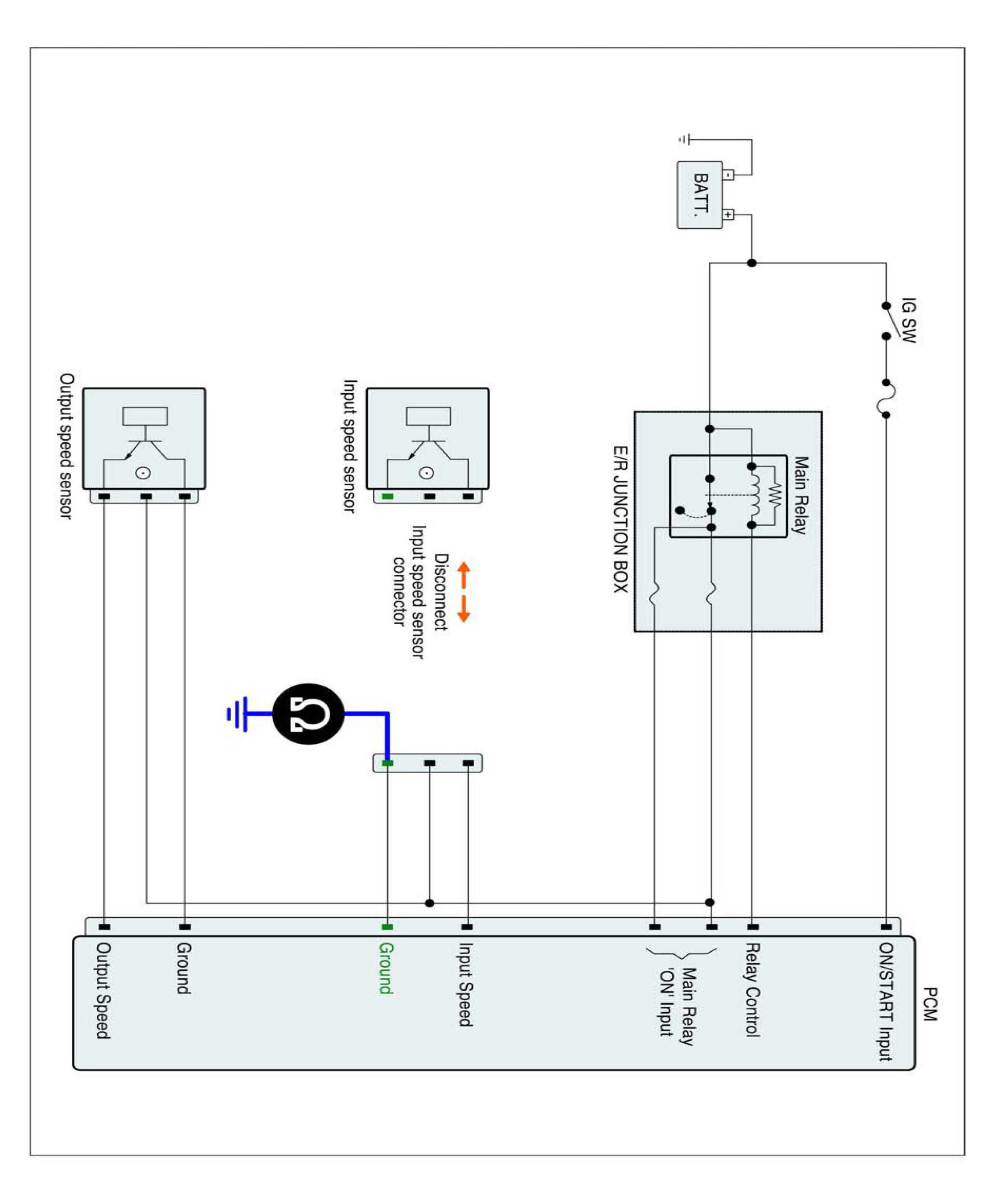 3. Measure resistance between "Ground" terminal of the INPUT SPEED SENSOR harness connector and chassis ground.