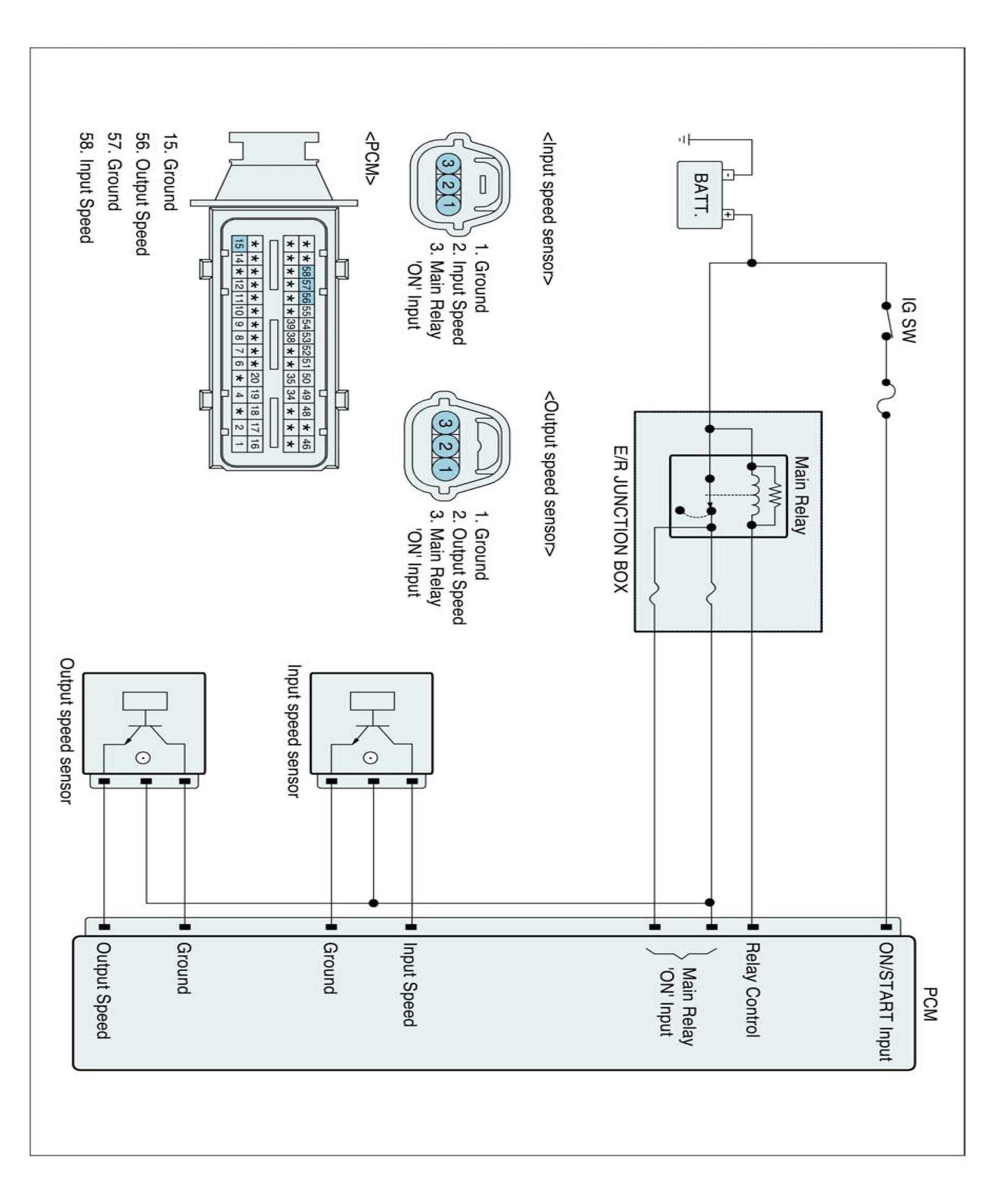 The Output Speed Sensor outputs pulse-signals according to the revolutions of the output shaft of the transmission. The Output Speed Sensor is installed in front of the Transfer Drive Gear to determine the Transfer Drive Gear rpms by counting the frequency of the pulses. This value, together with the throttle position data, is mainly used to decide the optimum gear position.