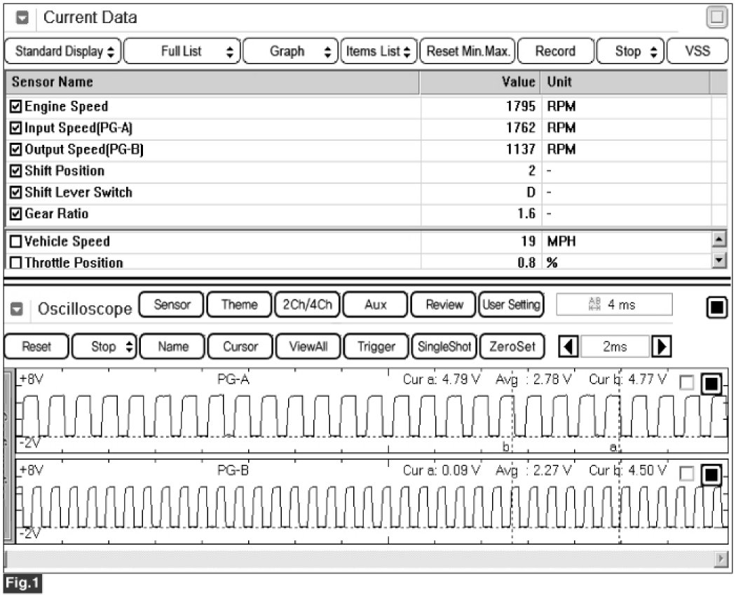 The value of the input shaft speed should be equal to the value of the output shaft speed, when multiplied by the 2nd gear ratio, while the transaxle is engaged in the 2nd gear. For example, if the output speed is 1000 rpm and the 2nd gear ratio is 1.529, then the input speed is 1529 rpm.
