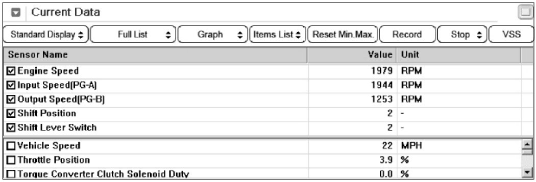 3. Monitor the "INPUT & OUTPUT SPEED SENSOR" parameter on the scantool.