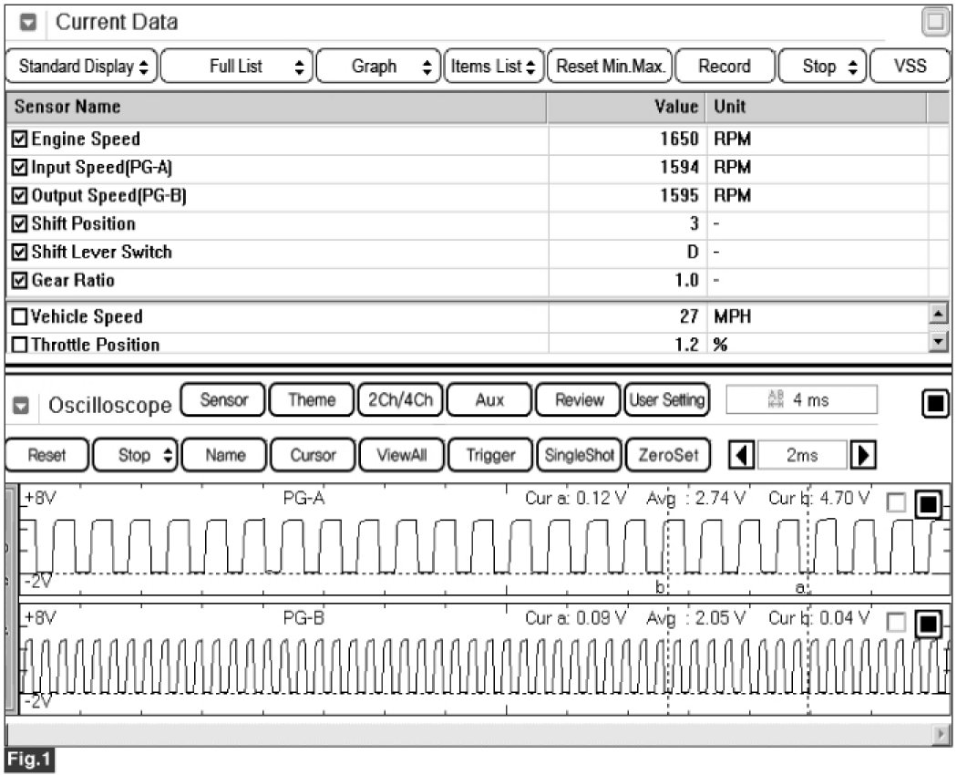 The value of the input shaft speed should be equal to the value of the output shaft speed, when multiplied by the 3rd gear ratio, while the transaxle is engaged in the 3rd gear. For example, if the output speed is 1,000 rpm and the 3rd gear ratio is 1.000, then the input speed is 1000 rpm.