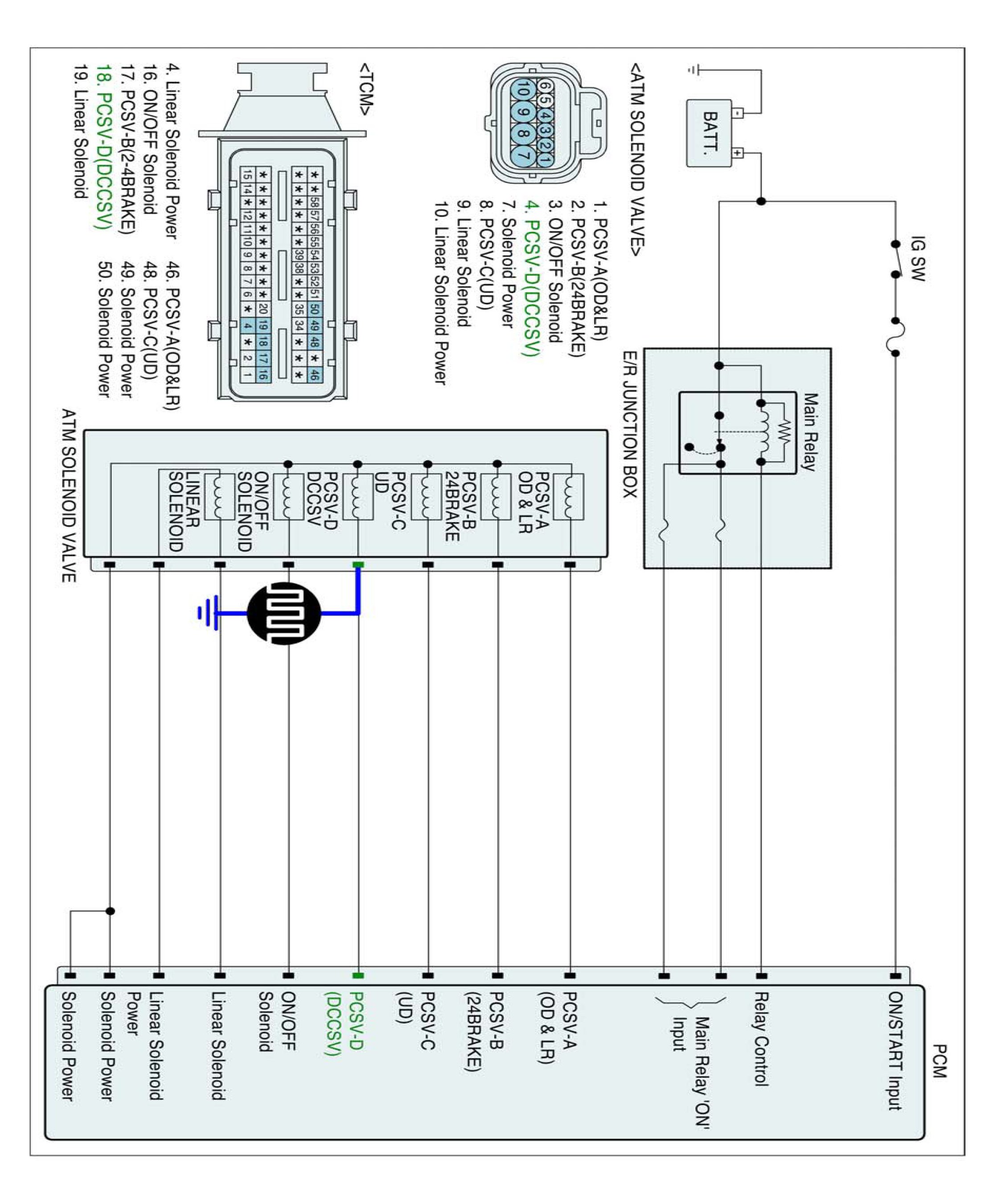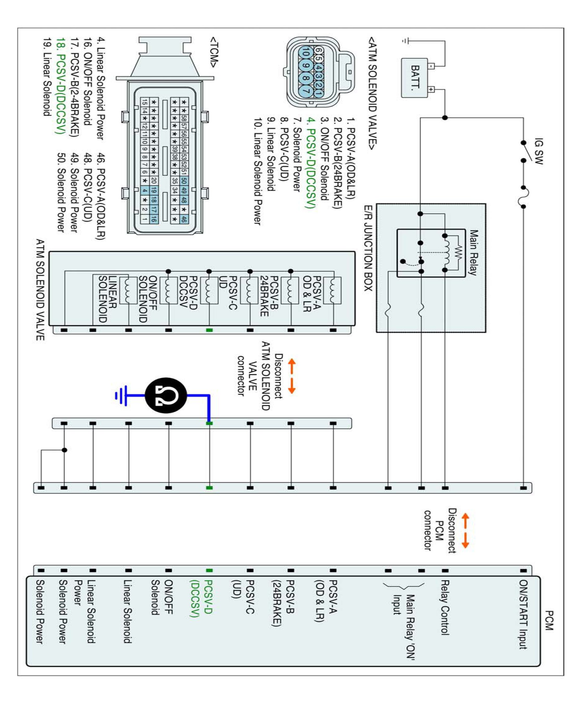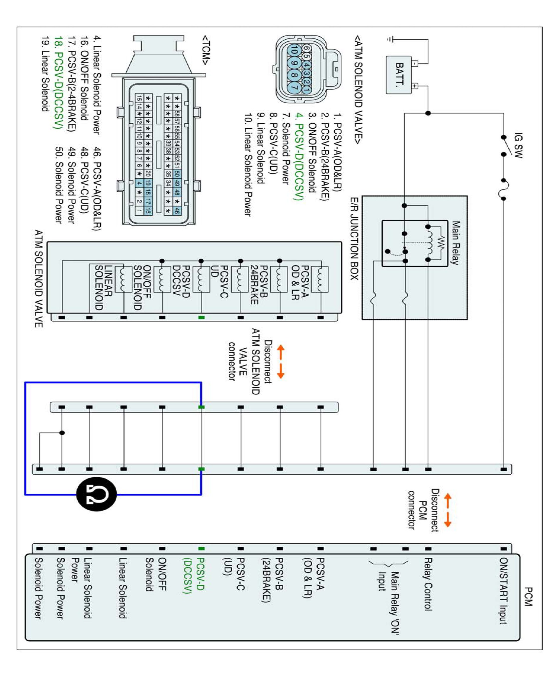 (2) Disconnect "A/T SOLENOID VALVE" connector and "PCM/TCM" connector.