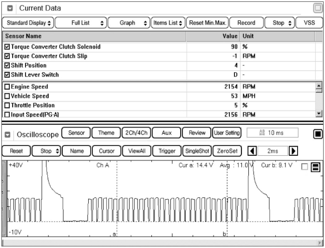 1. Connect "A/T SOLENOID VALVE" connector and install device for measuring wave form.