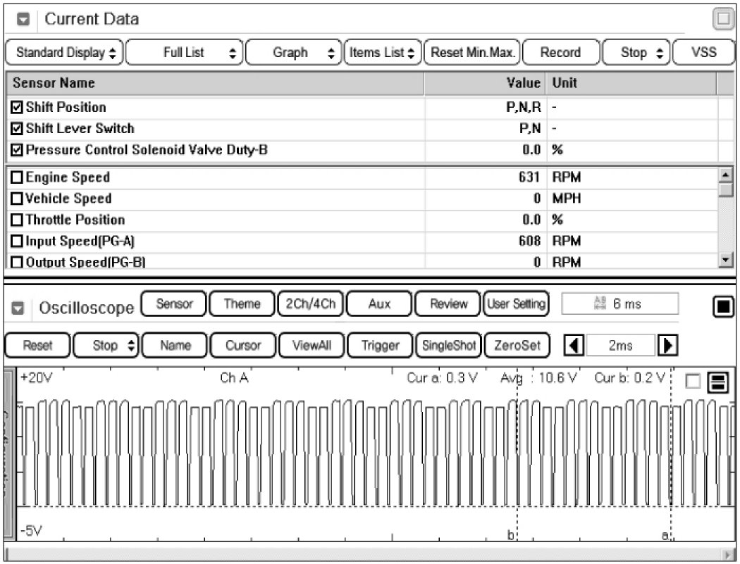 1. Connect "A/T SOLENOID VALVE" connector and install device for measuring wave form