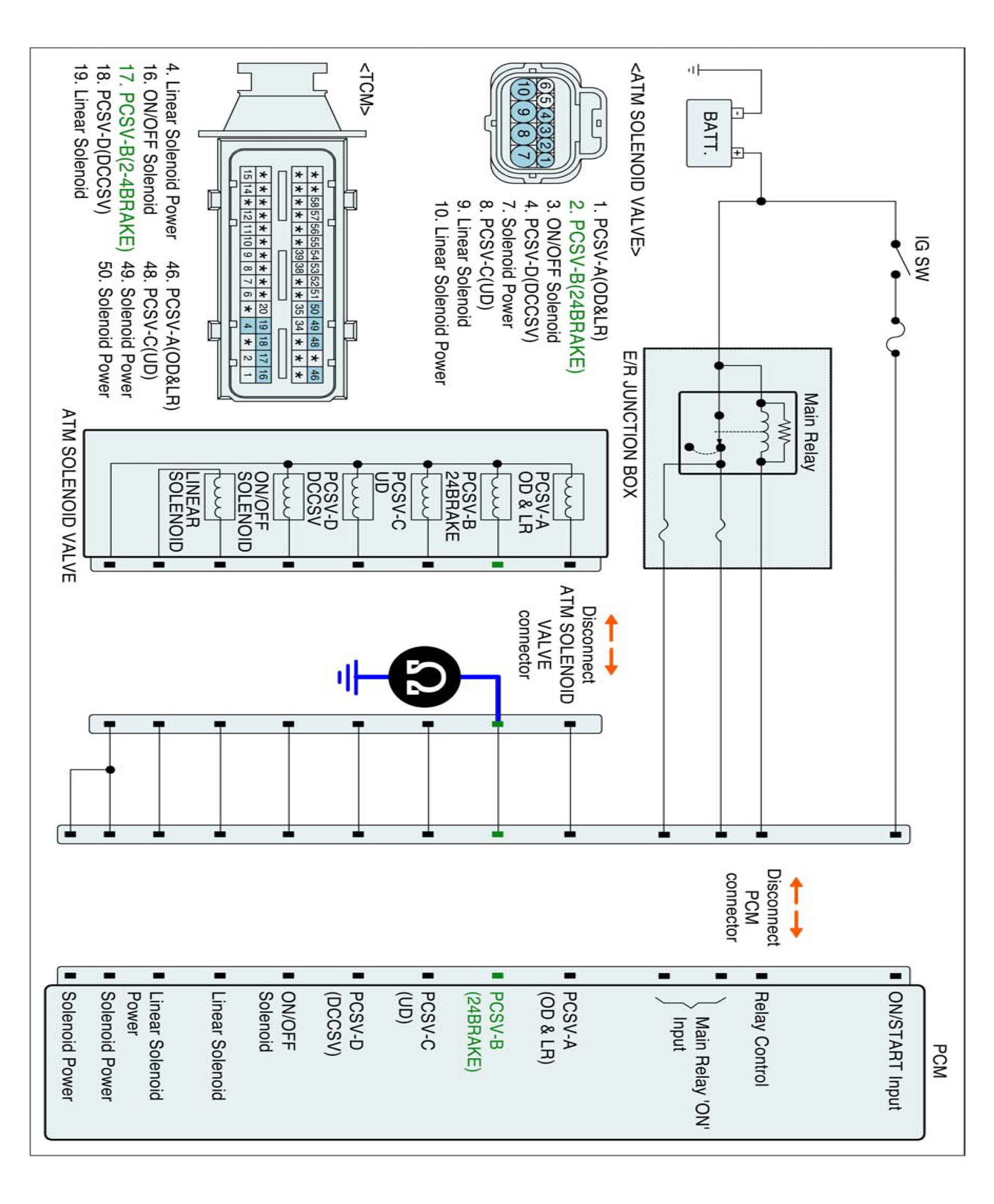 (2) Disconnect "A/T SOLENOID VALVE" connector and "PCM/TCM" connector