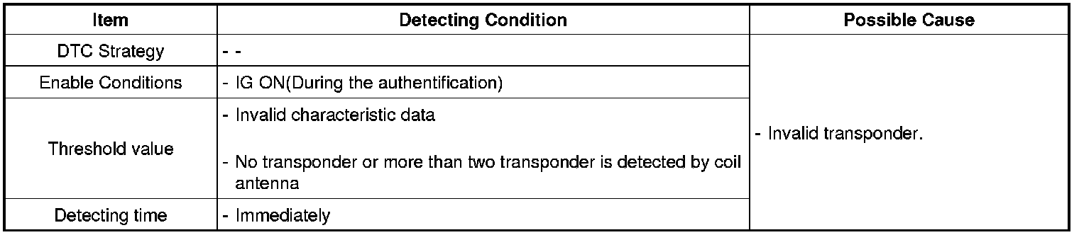 The PCM/ECM sets DTC P1675 if characteristic data of transponder doesn't coincide with that of PCM/ECM owing to transponder programming error.