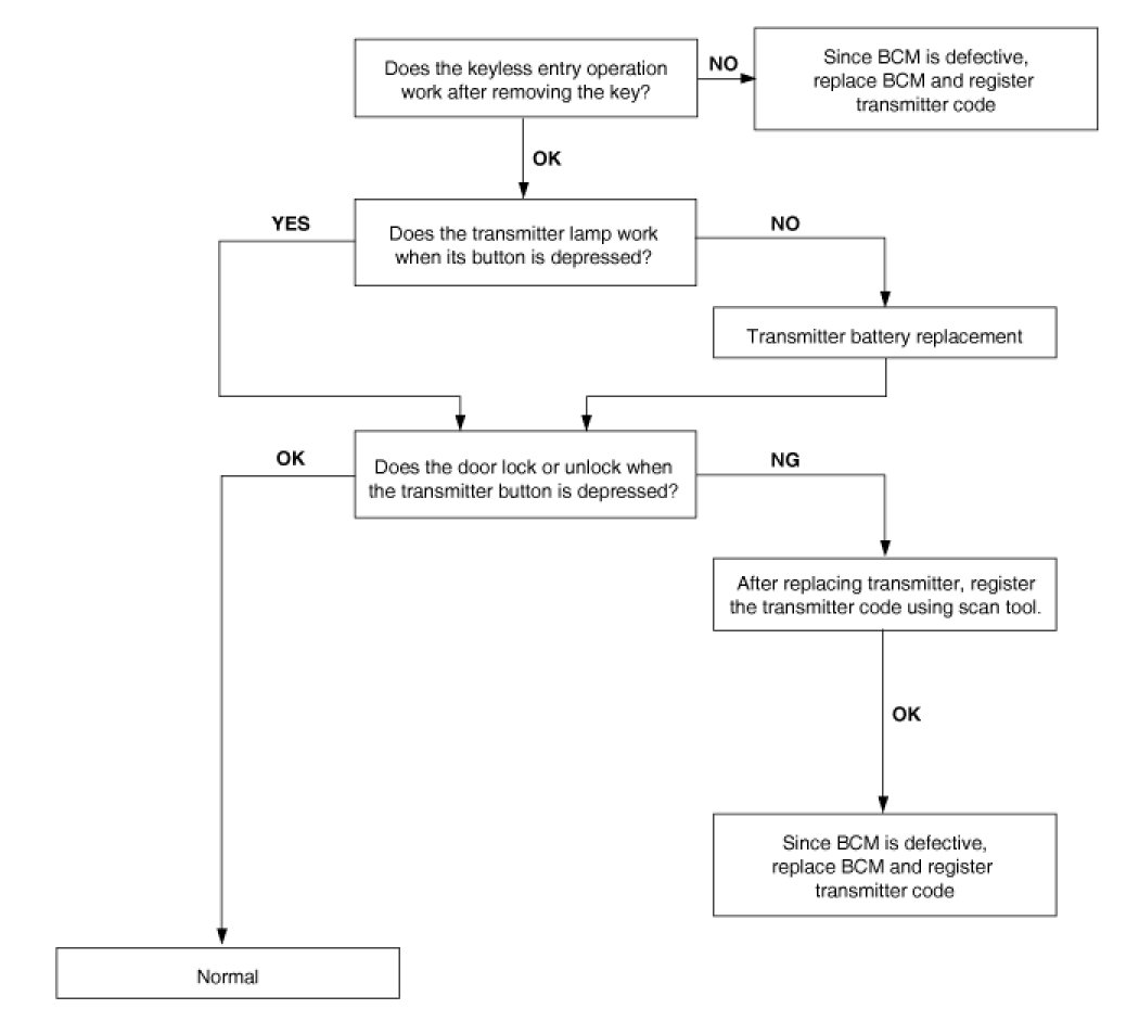5. When the vehicle is locked by the transmitter, central door lock function works but hazard lamp doesn't blink.