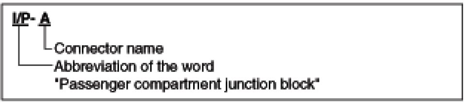 A junction block identification symbol consists of a wiring harness location classification symbol corresponding to a wiring harness location and number corresponding to the connector in the junction block.