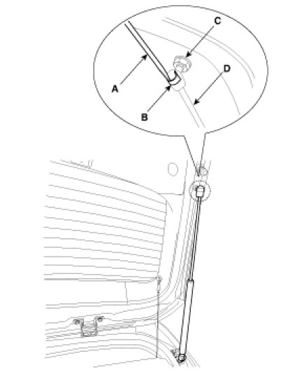 1. Using a screwdriver (A), lift up slightly the socket clips (B) of both ends on the lifer (D), and then remove the lifter from the bracket (C).